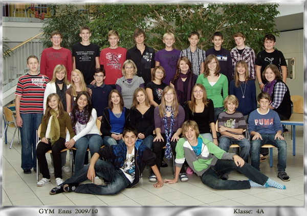Schuljahr 2009/2010Von / 18. September 2010 1A | KV: Mag. Severin Holzleitner 1B | KV: Mag. Anna Bart 1C | KV: Mag. Jochen Rauber 1D | KV: Mag. Johann Danner 2A | KV: Mag. Tanja Klambauer 2B | KV: Mag. Ing. Thomas Wiesinger 2C | KV: OStr. Mag. Karin Eichler 2D | KV: Mag. Margarita Tumphart 2E | KV: Mag. Martina Salzmann 3A | KV: Mag. Frank Linke 3B | KV: Mag. Jürgen Tobisch 3C | KV: Mag. Günther Redl 3D | KV: Mag. Gisela Golser 3E | KV: Mag. Daniela Weigl-Anzinger 4A | KV: OStr. Mag. Elke Barth-Alt 4B | KV: Mag. Erika Renetzeder 4C | KV: Mag. Stefan Denkmayr 4D | KV: Mag. Karin Kornberger 5A | KV: Mag. Martin Diwold 5G | KV: Mag. Gabriela Riess 6A | KV: Mag David Weinberger 6B | KV: Mag. Dagmar Öhler 6G | KV: Mag. Helga Meditz 7A | KV: Mag. Michaela Hörmann 7B | KV: Mag. Susanne Pollinger 7G | KV: Mag. Hannes Haunschmidt 8A | KV: Mag. Bianca Thalhammer 8G | KV: Mag. Rebekka Dirnberger 8A und 8G
