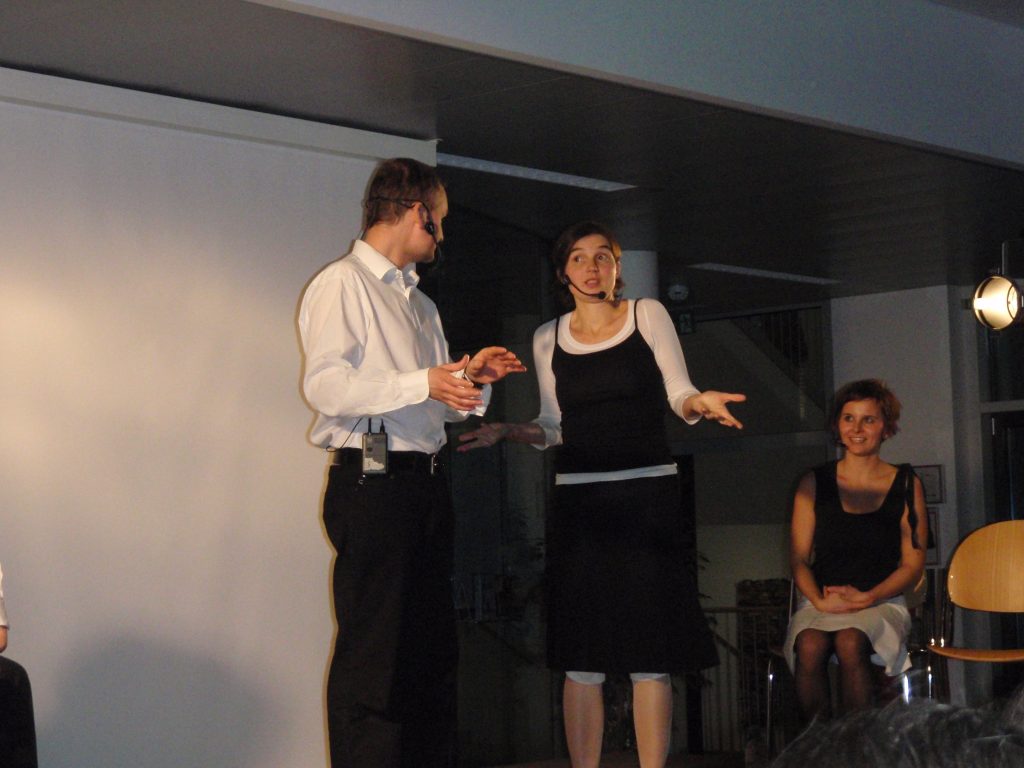 Die zebras, fünf junge Künstler, ein Musiker und vier Schauspieler, die sich zu einer Improvisations-Theatergruppe zusammengefunden haben, traten in der Aula des b[r]g Enns auf. Das Endergebnis war ein wahrhaft kurzweiliger Abend, den das zahlreich erschienene Publikum mit begeistertem Applaus bedachte.