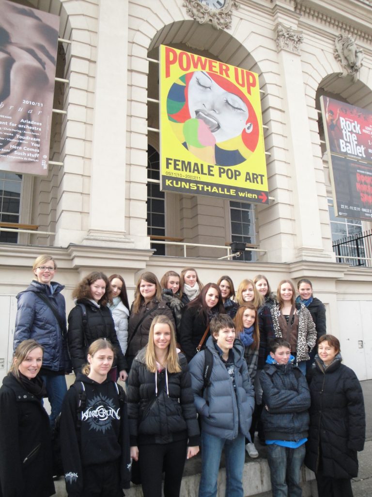 Am Freitag, den 4.2.2011, reiste die 5G Klasse vom Fach Bildnerische Erziehung aus in die Bundeshauptstadt, um sich aus verschiedenen Blickwinkeln mit dem Themenbereich „Kunst – Geschichte – Gesellschaft“ zu beschäftigen. Der weite Bogen der Inhalte der besuchten Ausstellungen reichte von der ägyptischen Sammlung des Kunsthistorischen Museums über Female Pop Art der 60er Jahre in der Kunsthalle Wien bis zur besonders beeindruckenden Ausstellung „Hyper Real – Die Passion des Realen in Malerei und Fotografie“ im Museum Moderner Kunst. Es war ein wirklich intensiver Tag, bei dem die warme Wintersonne den passenden Rahmen gab.