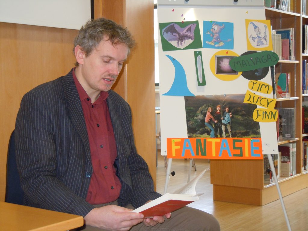 Er schrieb von drei Kindern, die ein tolles Abenteuer erleben. Herr Knapp hatte zwei Kapitel des Buches für uns vorbereitet. Im ersten Kapitel geht es um einen Jungen, der sehr eifersüchtig auf seine zwei Geschwister ist, da diese schon älter sind und auf die Insel gereist sind.