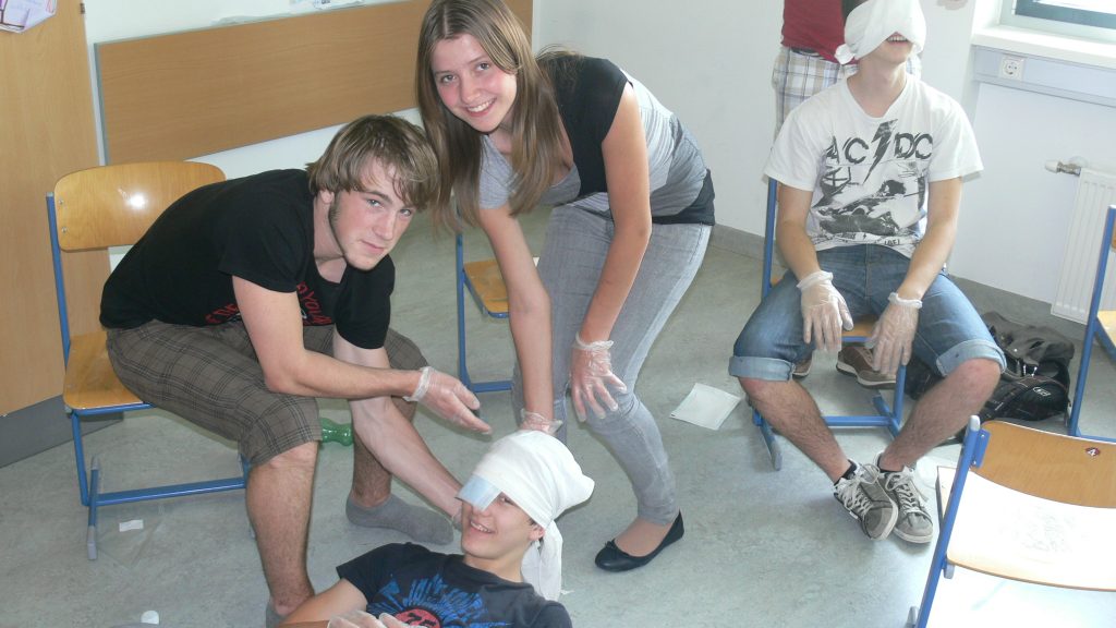 Erste Hilfe KurseVon / 7. Mai 2012 Am 4. und 5. Mai 2012 fand jeweils ein achtstündiger Erste Hilfe Kurs für insgesamt 38 SchülerInnen der 6. Klassen statt, der von allen bestanden wurde. Mag. Hannes Haunschmidt, JRK-Referent
