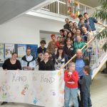Im Rahmen von Hand in Hand treffen sich seit fast 8 Jahren SchülerInnen der Sonderschule Hart-Leonding und des Gymnasiums Enns. Gestartet hat die Aktion Kollegin Mag. Bianca Thalhammer, weitergeführt wurden die Begegnungen von Mag. Dagmar Öhler und jetzt Mag. David Weinberger. Am Donnerstg, 4, April 2013, waren wieder einmal die speziellen SchülerInnen im b[r]g Enns zu Besuch. Gemeinsam spielten wir in der Turnhalle, gestalteten ein Riesen-Plakat, aßen und stießen mit (Kinder)Sekt auf den SchEz-Preis an.