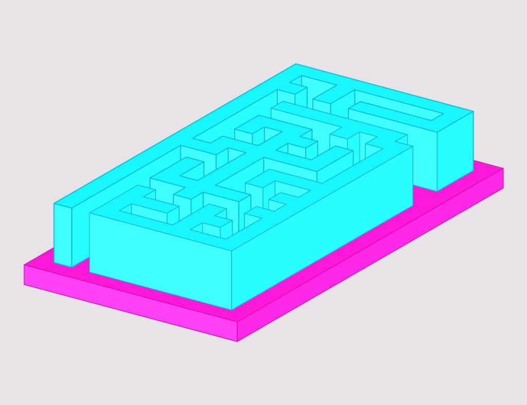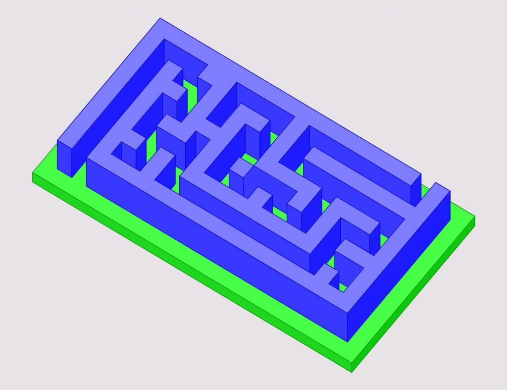 Arbeitsauftrag: Konstruiere auf einer vorgegebenen Grundplatte dein eigenes Labyrinth. Verwende die Software GAM. Schattiere das Objekt und exportiere ein Bild.