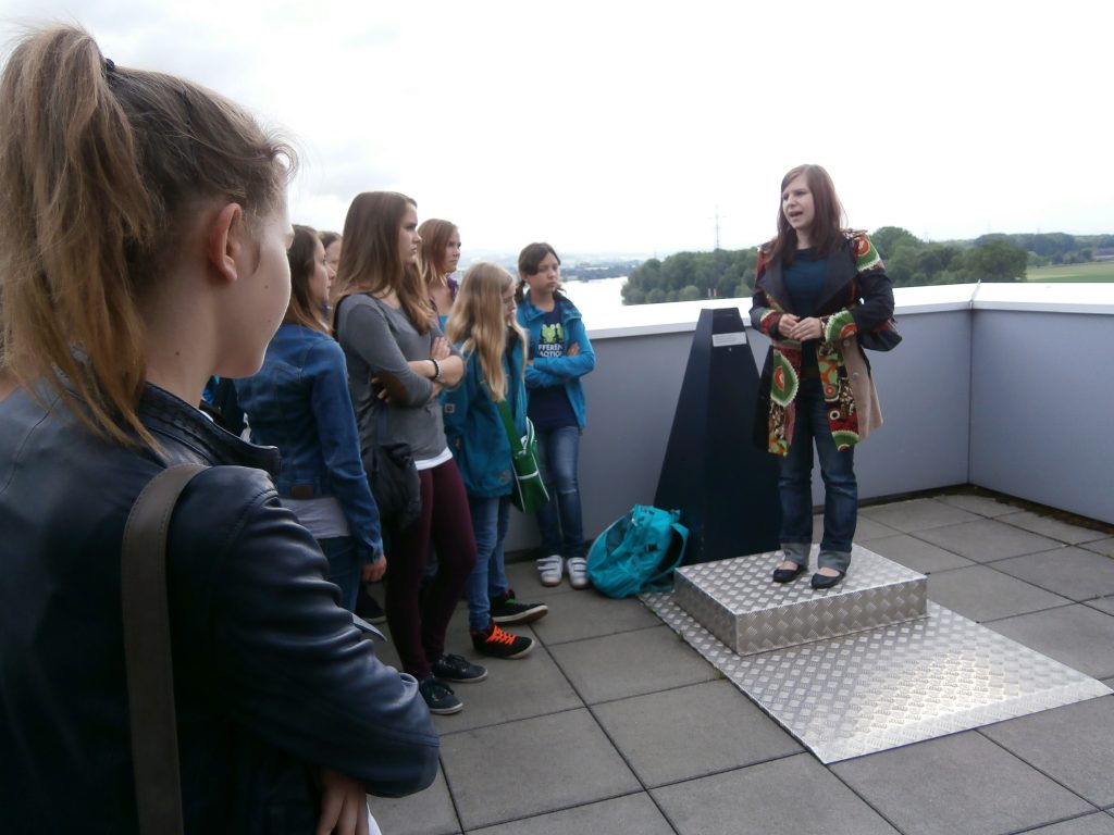 Am 22.5.2013 machten die Klassen 3.C und 3.D im Zusammenhang mit der Berufsorientierung eine Exkursion in den Enns-Hafen, in Begleitung von Frau Prof. Kornberger und Frau Prof. Dirnberger. Im Besucherzentrum mussten wir einige Treppen steigen, bevor wir auf der Aussichtsplattform angekommen waren. Dort wartete schon die Führerin, die uns durch den Vormittag begleiten und uns allerlei Dinge erzählen sollte. Sie berichtete uns einige Fakten über den Hafen und die Donau als Wasserstraße. Anschließend gingen wir auf eine andere Etage um in Wissensspielen unser Wissen über den Enns-Hafen zu testen. Eine Dokumentation über den Hafen wurde ebenfalls dort präsentiert. Wir besichtigten ein Ausstellungsschiff (ein altes Frachtschiff). Dort wurde gezeigt wie es in dem Inneren des Schiffes, gegen Ende des 20. Jh. aussah. Danach durften wir auf einem Schiff durch den Hafen mitfahren und bekamen ein Eis oder ein Getränk. Während der Fahrt erzählte unsere Führerin genaueres über den Hafen, bzw. über die Schiffe, an denen wir vorbeifuhren. Uns wurde berichtet, dass ein Frachtschiff mehr als 120 LKWs transportieren kann, um nur ein Beispiel zu nennen. Nach der Bootsfahrt machten wir ein Gruppenfoto. Zuletzt besichtigten wir noch DANUBIA Speicherei . Die Firma lagert Rohstoffe die anderen Firmen gehören (z.B. Schweinefutter, Rohstoffe für Erzeugung der Metalle). Die Exkursion hat uns sehr gefallen.