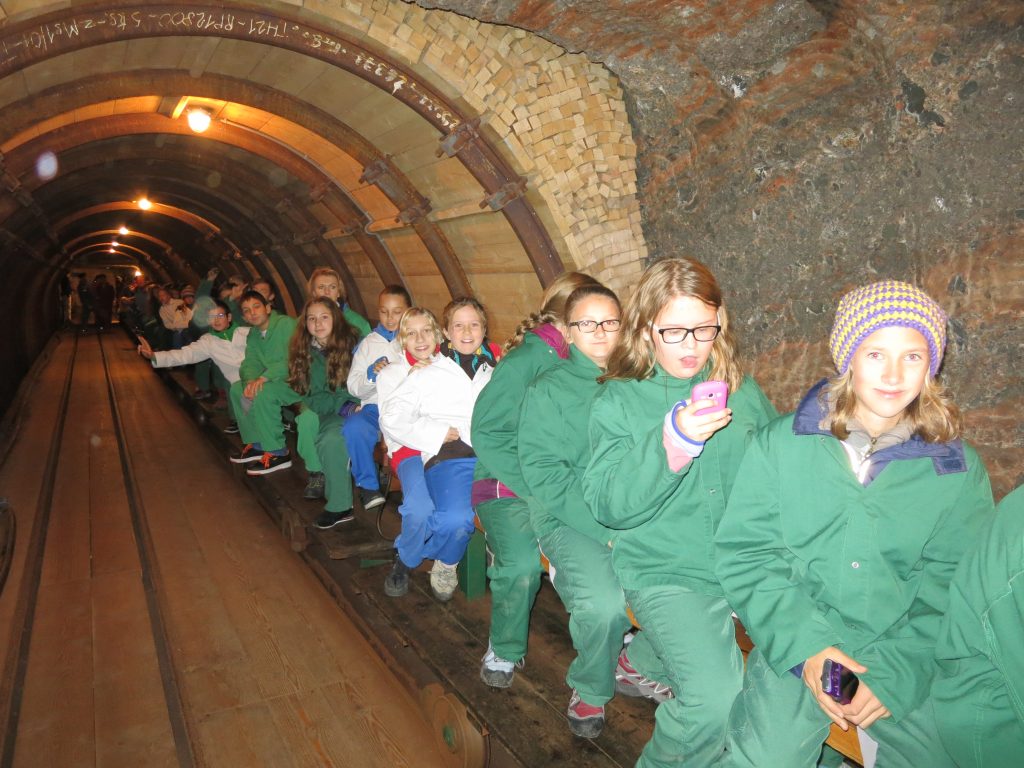 „Oben angekommen legten wir uns einen Salzschutzanzug an und dann begann die Führung. Wir sahen interessante Sachen, wie die Geschichte vom Mann im Salz, Sole zum Kosten, die neuesten Abbautechniken und vieles mehr. „