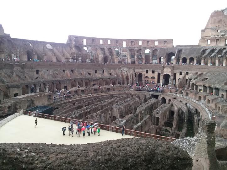 Alle Wege führen nach Rom. Dies gilt auch für die Latein-Schülerinnen und –Schüler der achten Klassen, deren erster Weg im neuen Schuljahr dorthin führte. Wie schon Goethe stellten sie fest, dass Rom ein Gesamtkunstwerk ist. Nahezu jedes Gebäude weist Besonderheiten auf und verdient sowohl Beachtung als auch Bewunderung. Säulen, Foren, Brunnen und Kirchen dominieren das Stadtbild, oftmals verbirgt sich deren wahre Schönheit im Innern. Denn von außen würde man so manche Basilika für eine restaurierungsbedürftige Ruine halten. Umso beeindruckender ist es dann, wenn man sie betritt und von den Figuren, den Mosaiken und den kolossalen Säulen überwältigt wird. Stichwort „kolossal“. Natürlich führte uns Herr Mag. Stöllner auch zum Wahrzeichen Roms, dem Kolosseum. Durch den permanenten Regen, der uns den ganzen Tag begleitete, konnten wir uns die Seeschlachten im Inneren des Amphitheaters plötzlich viel besser vorstellen.