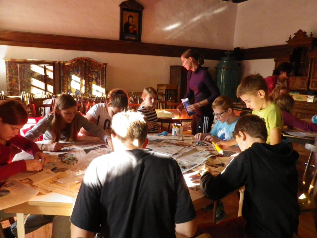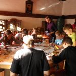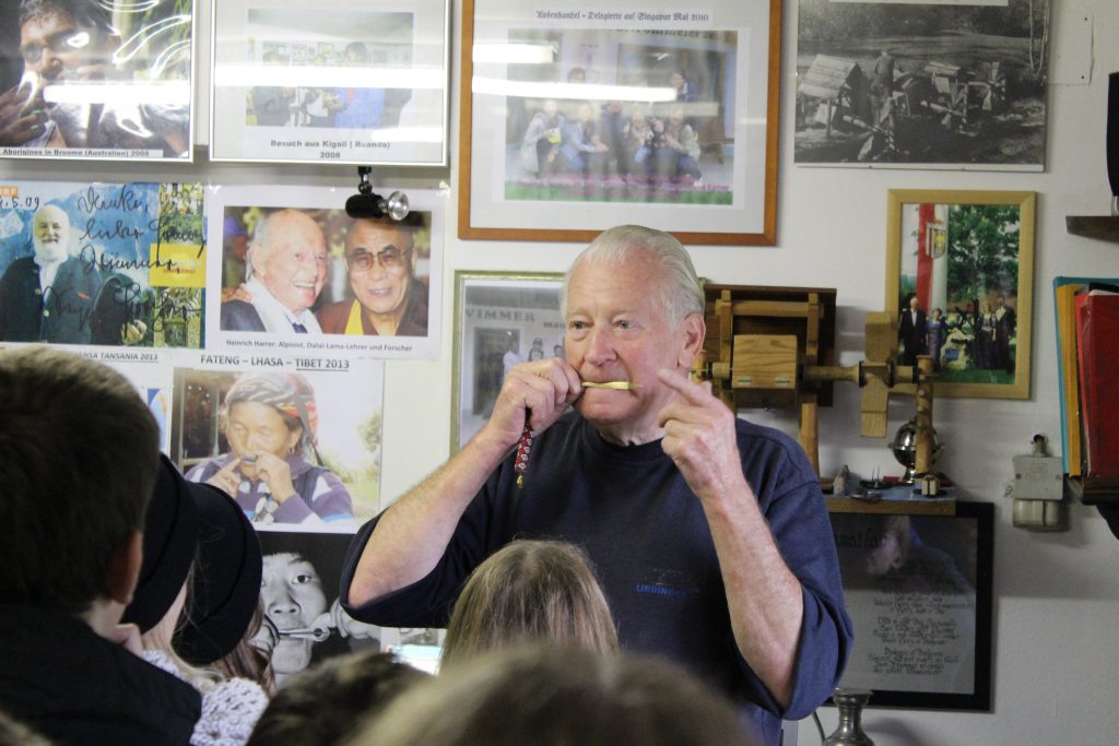 Für viele SchülerInnen war der Höhepunkt des Tages aber der Besuch in der Maultrommelfabrik Wimmer-Bades in Molln. Herr Wimmer verstand es auf einzigartige Weise, die SchülerInnen in den Bann der Maultrommelerzeugung und deren Vielfalt auf der ganzen Welt zu ziehen. Er spiele uns auf Maultrommeln von allen Kontinenten vor und beantwortete viele Fragen. Und während die LehrerInnen grübelnd daneben standen und überlegten, wie sie diese ungeteilte Aufmerksamkeit der SchülerInnen auch in der Klasse bekommen könnten, hatte schon fast jedes Kind eine Maultrommel und muszierte munter drauf los. Der Klang begleitete uns für den Rest der Woche auf der Burg fast pausenlos- zum Schluss schon in verschiedenen Klangvariationen.