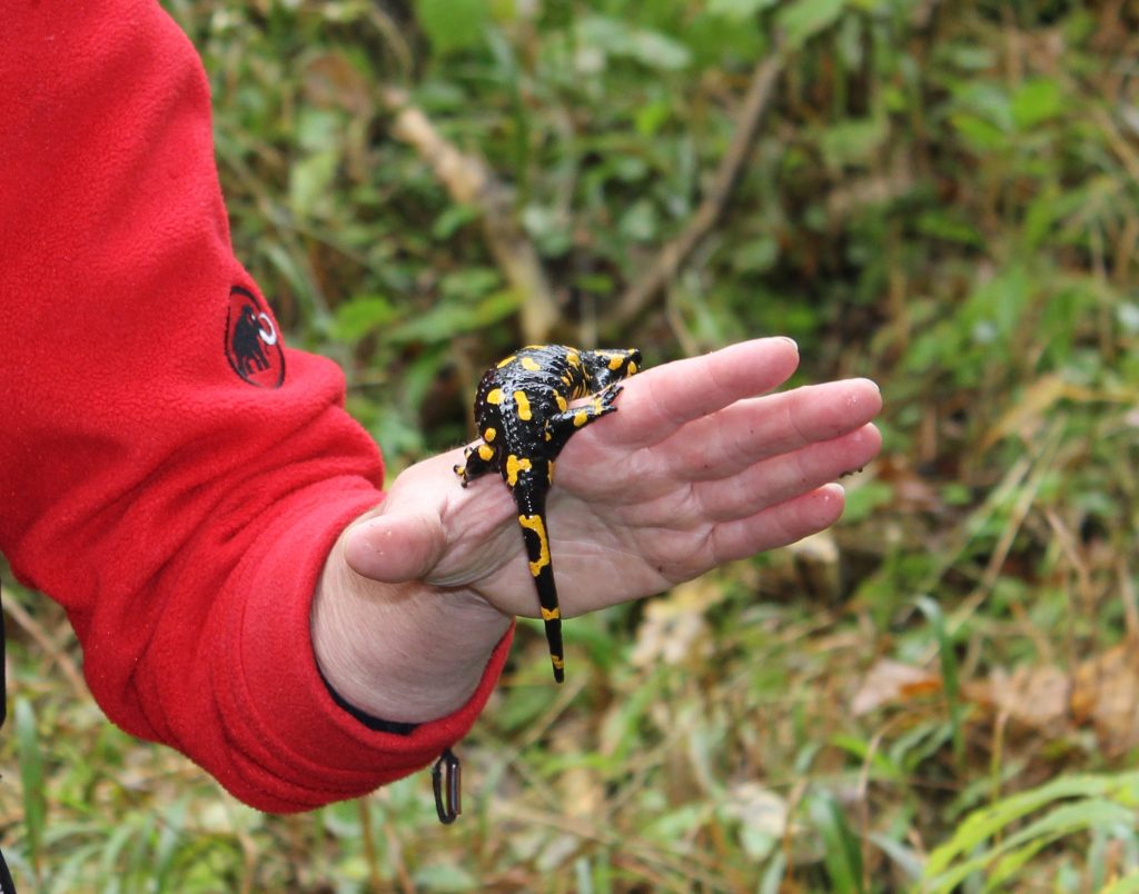Am einzig verregneten Tag der Woche fuhren wir in den Nationalpark Kalkalpen. Während der Busfahrt machten wir uns schon Gedanken, wie wir trocken bleiben könnten. Doch glücklicherweise fiel unser Programm in eine Regenpause. So konnten wir im Trockenen lernen, uns mit Hilfe des Kompasses und des richtigen Lesens von Karten im Wald zu orientieren. Wir bauten Sandberge und zeichneten die Höhenschichtlinien ein, stellten die Uhrzeit fest und lernten wo der Polarstern ist. Zusätzlich lasen wir die Spuren von Tieren im Wald und erfuhren viel über ihre natürlichen Feinde und ihr Fressverhalten.