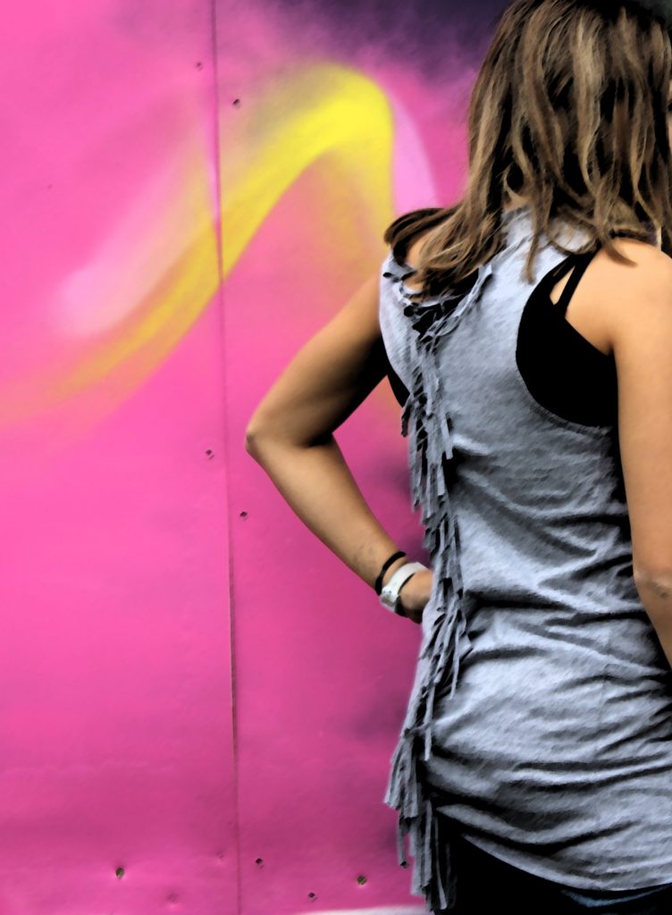 Im textilen Werkunterricht setzten wir uns mit der täglichen Schulkleidung am b[r]g Enns auseinander. Was wird an unserer Schule getragen, was ist „in“ und welche Kleidung stößt auf Ablehnung? Die Einheitlichkeit fällt erst auf den zweiten Blick auf. Denn fast jede Schülerin und jeder Schüler trägt Jeans und T-Shirt in verschiedenen Farben und Variationen. Einerseits herrscht Einheitslook, andererseits besteht der Wunsch nach Individualität. Durch Veränderungen von Jeans und T-Shirt gestalteten die Schülerinnen der 4D und 4E neue Outfits. Danach entwickelten die Schülerinnen aus einem einfachen grauen T-Shirt ein individuelles Kleidungsstück. So wurde aus einem T-Shirt eine Tasche, ein Kleid oder ein neugestaltetes Oberteil.