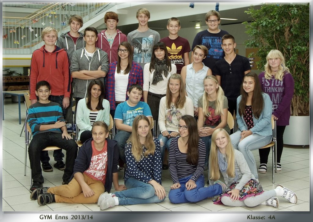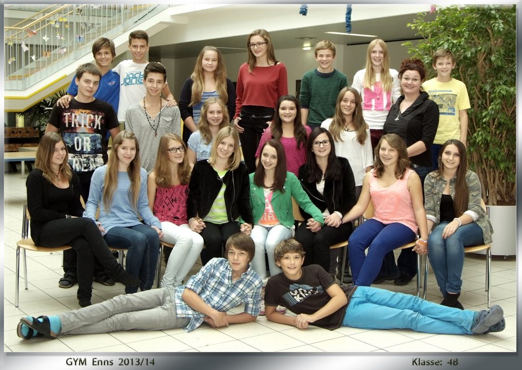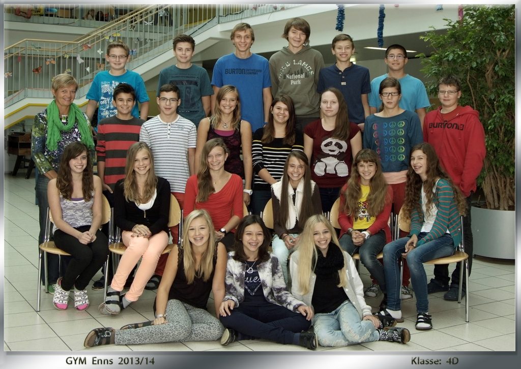 Schuljahr 2013/2014Von / 10. November 2014 1A | KV: Mag.a Anna Bart 4B | KV: Mag.a Claudia Furthner 4C | KV: Mag.a Rebekka Dirnberger 4D | KV: Mag.a Karin Kornberger 5A | KV: Mag.a Bianca Thalhammer 5B | KV: Mag.a Elisabeth Breinreich 6A | KV: Mag.a Tanja Klambauer 6B | KV: Mag.a Martina Salzmann 6G | KV: OStR. Mag.a Margerita Fenzl 7A | KV: Mag. Frank Linke 7B | KV: Mag.a Daniela Weigl-Anzinger 7G | KV: Mag. Jürgen Tobisch 8A | KV: OStR. Mag.a Elke Barth-Alt 8B | KV: DI. Mag. Christoph Fürlinger 4A | KV: Mag.a Helga Meditz 3E | KV: Mag.a Petra Schartmüller 1B | KV: OStR. Mag.a Herta Huber 1C | KV: VL Christoph Stadlbauer 1D | KV: Mag.a Katherina Wöckinger 1E | KV: Mag.a Gisela Golser 2A | KV: Ing. Mag.Thomas Wiesinger 2B | KV: Mag.a Gabriele Hahn 2C | KV: Mag. Martin Diwold 2D | KV: Maga.Veronika Stehrer 2E | KV: Mag.a Monika Asanger 3A | KV: Mag.a Herlinde Aichinger 3B | KV: Mag.a Michaela Hörmann 3C | KV: Mag. Hannes Haunschmidt 3D | KV: Mag.a Bettina Taferner 8G | KV: Mag. Stefan Denkmayr