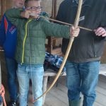 Nun teilten wir uns in drei Gruppen auf, um zu unseren jeweiligen Workshops „Metallarbeiten“, „Bogenschießen“ und „Töpfern“ zu gehen. Bei den Metallarbeiten entstanden wunderschöne Ringe, Anhänger und Armreifen. Die Töpfer kneteten erst den Lehm zu Ton, um dann schöne Gefäße, wie zum Beispiel Schüsseln, zu formen. Beim Bogenschießen galt es, sein Visier richtig einzustellen und das in etwa 15 Metern Entfernung positionierte (unechte) Wildschwein zu treffen. Obwohl nicht jeder Schuss ein Treffer war, hatten alle viel Spaß dabei.
