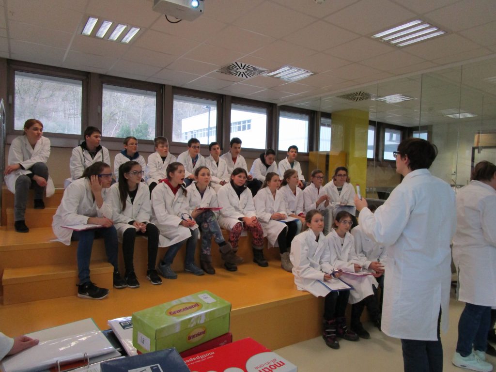 angekommen, wurden wir in ein Besuchslabor geführt und zogen uns weiße Labormäntel