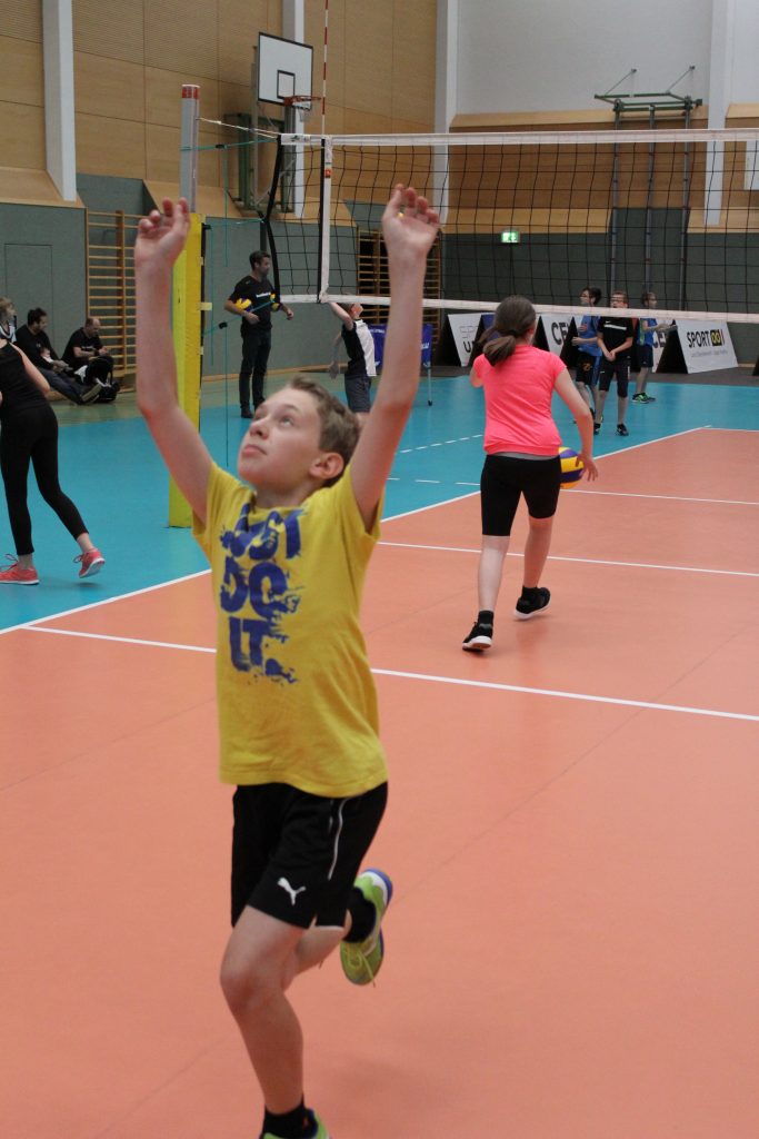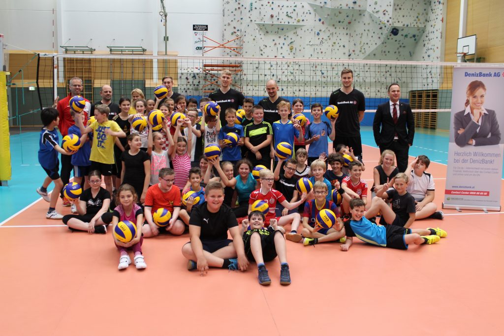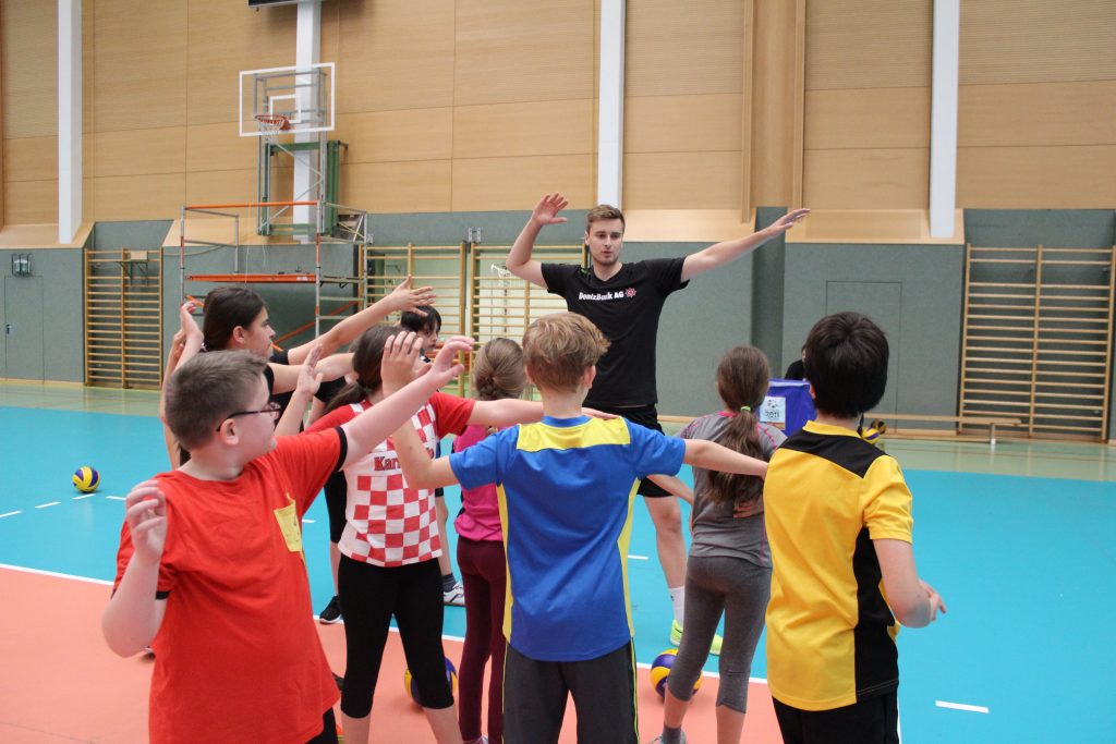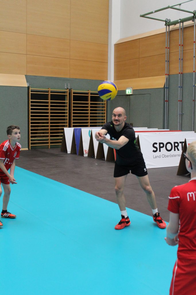 Vier Mitglieder des österreichischen Volleyball-Nationalteams trainierten unter Anleitung des Nationalteam-Trainers mit den SchülerInnen der 1D und 1E im b[r]g Enns. Im Rahmen des Turnunterrichts am 02. Juni 2016 hatten die beiden Klassen die Möglichkeit, mit professionellen Volleyballspielern die Basics dieser Ballsportart kennen zu lernen bzw. zu verbessern. Mit viel Begeisterung wurde gebaggert, gepritscht und geschmettert. Sehr begehrt waren zum Abschluss Autogramme der Stars, vor allem die Unterschrift unseres ehemaligen Schülers Philipp Kroiss. Das Nationalteam bestreitet dieses Wochenende zwei Länderspiele in unserer Turnhalle und kann nach dem heutigen Training sicherlich mit lautstarker Unterstützung der neugewonnenen Fans rechnen.