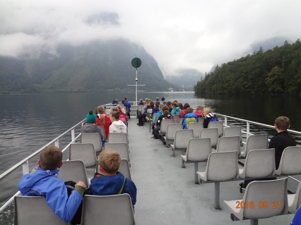 Am Nachmittag fuhren wir mit dem Bus nach Hallstatt. Nach der Bergfahrt mit der Standseilbahn und einer Wanderung über das Hallstätter Gräberfeld hatten wir eine Führung durch das Salzbergwerk. Auf langen Holzrutschen gelangten wir in das Innere des Berges. Wir erfuhren viel darüber, wie das Salz in den Berg und durch den Menschen wieder aus dem Berg gekommen ist. Durch die Lichtershow beim unterirdischen See lernten wir die Geschichte des Mannes im Salz kennen.