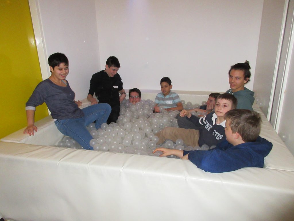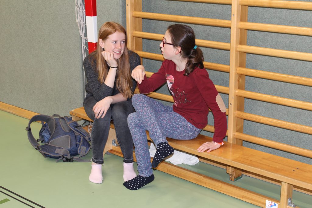 Anschließend machten wir uns auf den Weg zu unserem Turnsaal, wo wir, mit Schwungtuch und Bällen ausgerüstet, verschiedenen Spiele spielten. Um den Schülern einen kleinen Einblick in unseren Sportunterricht zu geben, bauten wir sogar einen kleinen Parcours auf, den die Schüler der Schule Hart ausprobieren konnten.