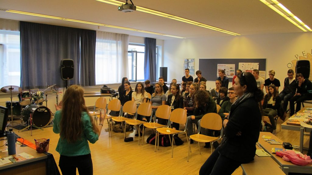 Spannende Informationen erhielten die rund 40 SchülerInnen der 7. Klassen vom Jugendservice des Landes Oberösterreich. Drei Referentinnen berichteten über verschiedene Arten sogenannter Freiwilligendienste, die vor allem nach der Matura beliebt sind. Wir hörten von Auslandsdiensten, EU- Bildungsprogrammen, Entwicklungshilfeeinsätzen wie „Don Bosco Jugend Eine Welt“. Eine junge Studentin berichtete begeistert von ihrem Jahr in Slowenien, das sie über das große Erasmus-Programm der EU absolviert hatte. Sie wurde bei der Suche nach Einsatzorten bestens vom Jugendservice in Linz unterstützt. Spesen (An-/Abreise und Verpflegung vor Ort) und sogar Taschengeld werden von Erasmus bezahlt. Ihre persönlichen Erfahrungen und Erlebnisse möchte sie nicht missen.