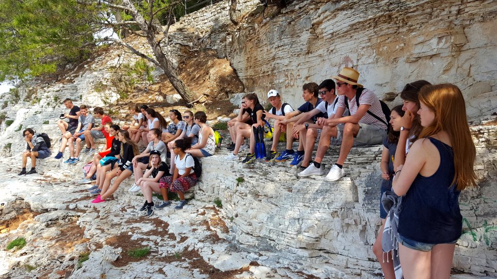 Montagmorgen um acht Uhr früh, fuhren wir, voller Euphorie und Vorfreude, Richtung Kroatien. Unterwegs machten wir natürlich ein paar Stopps bei diversen Tankstellen und obwohl wir so lange fuhren, wurde niemandem langweilig. Viele hörten Musik, schliefen, unterhielten sich und einige lasen sogar ein Buch. Schneller als wir vermutet hatten, waren wir bei unserer Jugendherberge angekommen, und der erste Eindruck war: „Irgendwie hätten wir uns etwas anderes erwartet.“