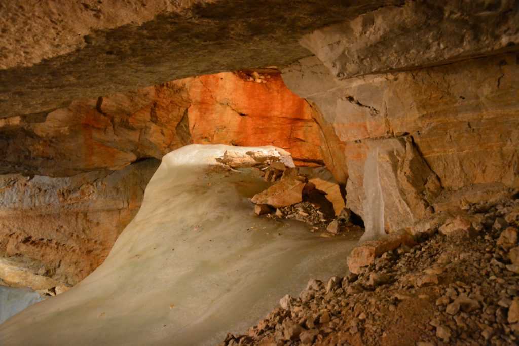„Woooooooaahhhh… GIS-DAY!“ hieß es wieder am 28.06.2017, als wir, die siebten Klassen mit Frau Professor Kornberger und Frau Professor Meister, mit der Gondel Richtung Gipfel fuhren. Denn einige Monate zuvor hatten wir das Glück, einen Ausflug zum Dachstein beim GIS-Day zu gewinnen. Bei der Mittelstation angekommen, wanderten wir zu den Eishöhlen. Sobald alle drinnen waren, wurde einigen ziemlich schnell ziemlich kalt, denn ja, auch wenn es draußen im Schatten 30°C haben sollte, hält sich die Temperatur in Eishöhlen doch um den Nullpunkt. Allerdings lohnte sich die Kälte, sobald man die Eisskulpturen bewundern konnte, die sich über die Jahrhunderte dort aufgetürmt hatten. Durch die richtige Beleuchtung wirkte das Ganze nahezu magisch. Als dann aber plötzlich ein Stück Eis herunterbrach und knapp vor uns auf dem Boden zersprang, war es für viele mit der Magie vorbei. Trotz dieses kurzen Schrecks lohnte es sich in jedem Fall, die Höhle besucht zu haben, auch wenn wir alle wieder froh waren, draußen von der Sonne gewärmt zu werden. Auch das gesponserte Mittagessen tat seinen Teil dazu, dass uns wieder warm wurde. Nun ging es zu den Five Fingers, von wo aus man eine wundervolle Aussicht genießen konnte, wenn die Höhenangst nicht überhand gewann. Auch die Welterbespirale war in jedem Fall den Aufstieg wert, denn hier hatten wir das letzte Mal spektakuläre Sicht auf die umliegenden Berge. Denn plötzlich kam Nebel auf, und binnen weniger Minuten war alles in ein undurchsichtiges Grauweiß getaucht. Aufgrund der schlechten Sicht entschieden wir uns dagegen, den Hai zu begutachten, für den wir noch ein ganzes Stück hätten gehen müssen, und gönnten uns stattdessen eine kleine Stärkung in einer Hütte. Das war dann auch schon der letzte Zwischenstopp, bevor es zurück zur Gondel ging, um den Nachhauseweg anzutreten.