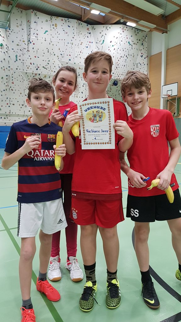 Turnierleitung: Prof. Thomas Kaiser, Prof. Christian Breurather, Prof. Peter Michlmayr und die Schulsprecherinnen Christiane Bräuer und Victoria Herber (7A)