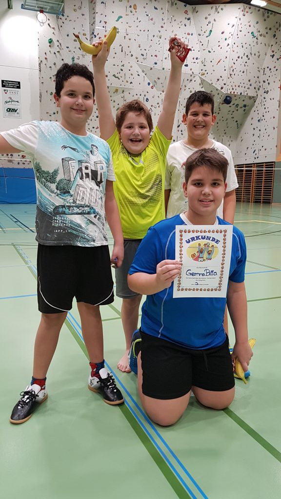 Die SportlehrerInnen organisierten mit Unterstützung des Elternvereins und SchülerInnen der Unverbindlichen Übung Volleyball am Nachmittag des 1. Elternsprechtages (15.12.2017) das „Ball über die Schnur-Turnier“ für die 1. Klassen des b[r]g Enns, an dem 17 Mannschaften – d.h. ca. 60 SpielerInnen teilgenommen haben. Nach mehreren Gruppenspielen und anschließenden Semifinal- und Finalspielen strahlten folgende Mannschaften über den Sieg in ihrem Bewerb: