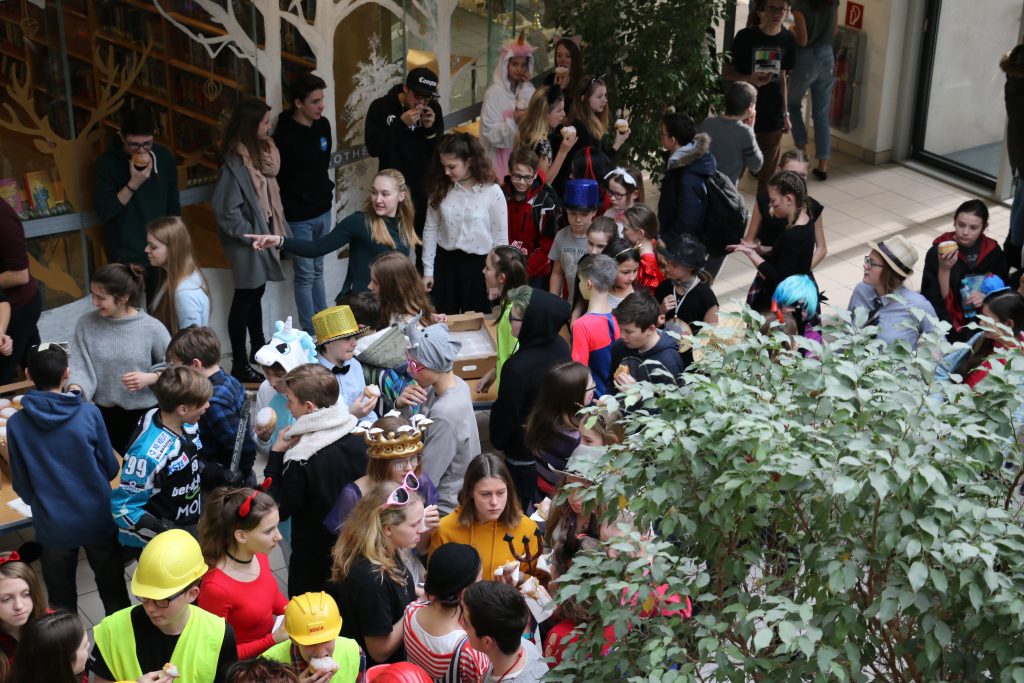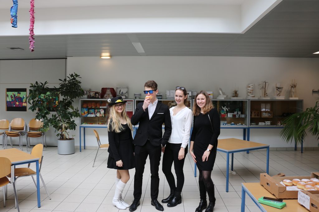 Zusätzlich organisierte die Schülervertretung 700 Krapfen für alle Schülerinnen und Schüler, die sich nur dank der Großzügigkeit von Sponsoren wie dem Elternverein, Herrn Direktor Pröll, der Sparkassa Enns und Variowelt Wallern finanzieren ließen. Die Krapfen konnten in der großen Pause bei Musik, einer lustigen Polonaise und vor allem bei sehr guter Stimmung genossen werden.