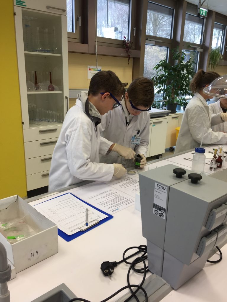Die SchülerInnen konnten im Rahmen der Berufsorientierung bei einem Besuch des Open Lab an der JKU Linz mit Hilfe chemischer Analysen und durch logische Überlegungen einen fiktiven Kriminalfall lösen. In Zweierteams überprüften sie Bodenproben, Finger- und Fußabdrücke, Blut- und Faserspuren etc. – so war der Täterkreis rasch ausfindig gemacht!