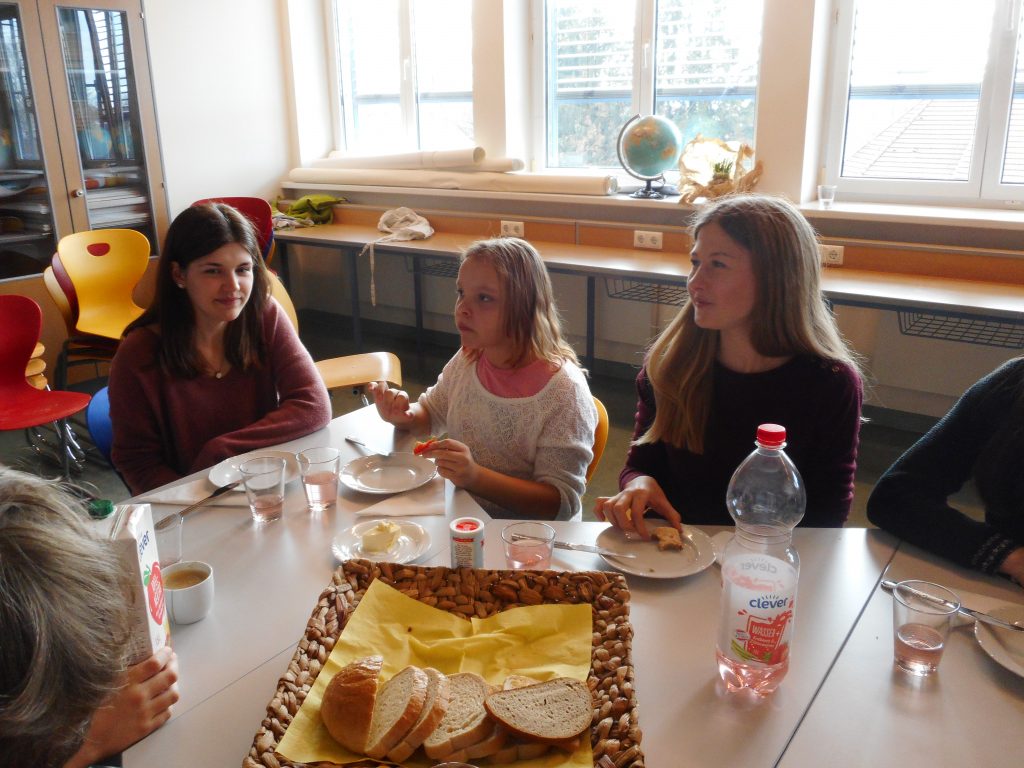 Bei der ersten Begegnung waren alle noch ziemlich schüchtern und zurückhaltend, doch das änderte sich bald, als wir anfingen, gemeinsam eine Jause und einen schmackhaften Kuchen zuzubereiten. Während des Kochens unterhielten wir uns über die verschiedensten Themen und hatten dabei großen Spaß. Alle waren gut gelaunt und die Stimmung war super. Nach dem gemeinsamen Essen machten wir einen Rundgang durch das Schulgebäude, anschließend spielten wir mit ihnen im Bewegungsraum, was nicht nur den Kinder, sondern auch uns sehr gefallen hat.