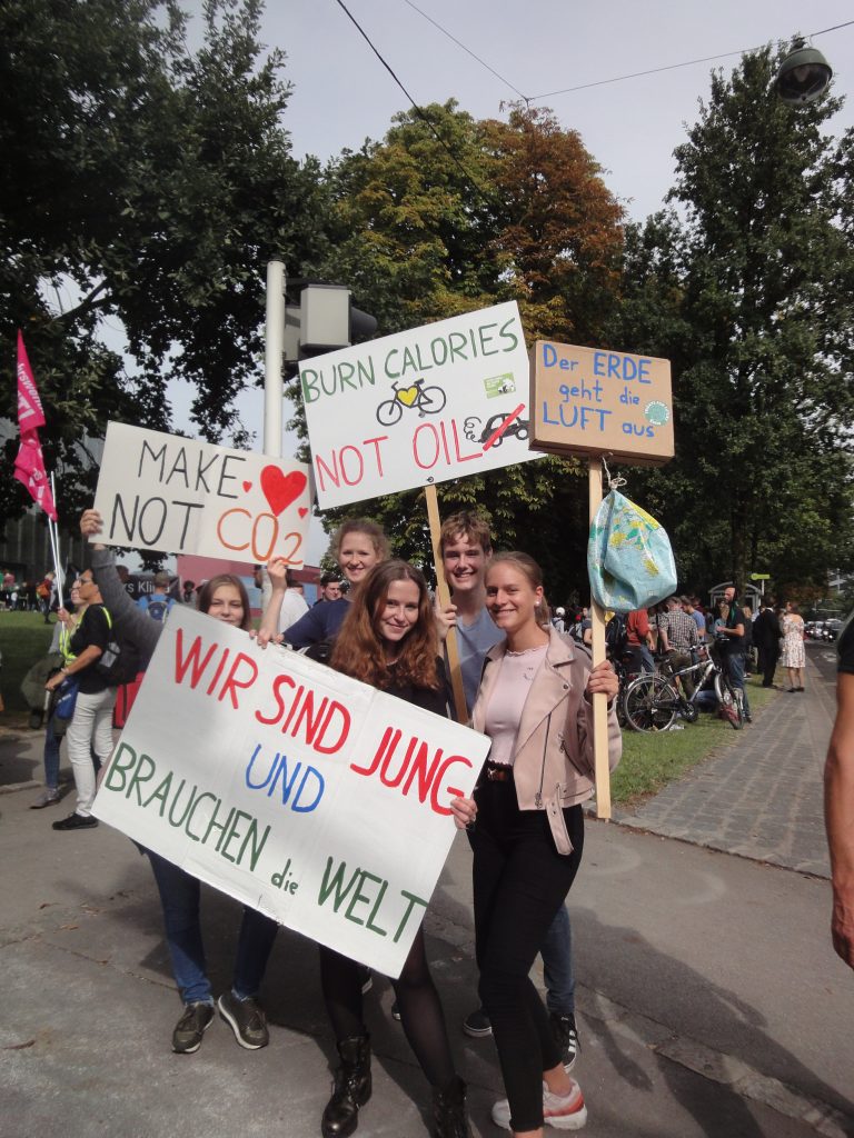 Nachdem wir mit dem Zug nach Linz gefahren waren, lernten wir am Bahnhofsvorplatz Sprüche und Lieder von Fridays For Future. Dann setzte sich die Menge – ganze 9000 Demonstrierende – in Bewegung. Zwar hätte der Demozug am Pfarrplatz enden sollen, aber es waren so viele Menschen gekommen, dass man am Pfarrplatz gar keinen Platz mehr hatte. Darum endete die Kundgebung an der Donaulände. So wie es in den Satzungen von FFF steht, verlief die Veranstaltung zwar laut, mit Schreien der bekannten Klimasprüche und Singen von Klimaliedern, aber völlig gewaltfrei. Die Schilder, die die Menschen mitgebracht hatten, waren oft sehr kreativ und regten zum Nachdenken an.