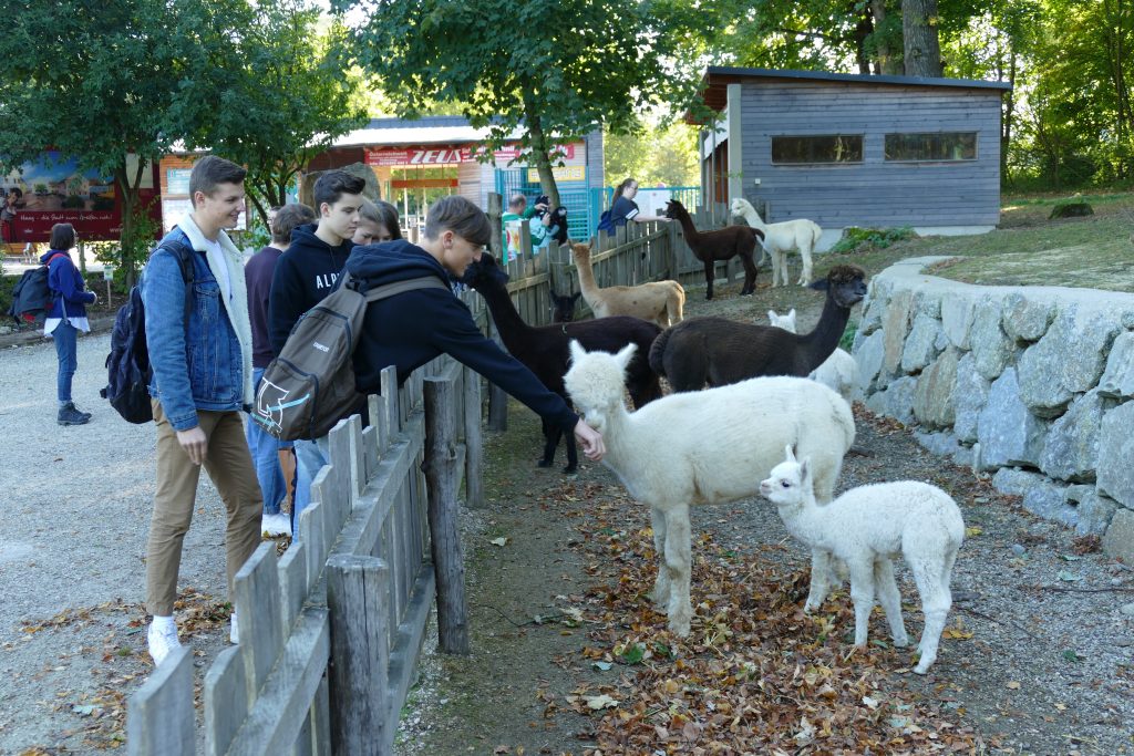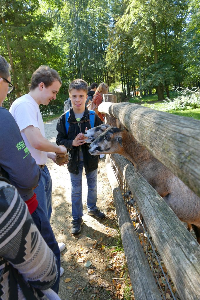 Das Begegnungsprojekt zwischen GymnasiastInnen und SchülerInnen der Landessonderschule St. Isidor mit der heurigen 7B haben wir mit einem Besuch im Tierpark Haag abgeschlossen. Insgesamt haben wir uns drei Mal getroffen: Ein Besuch in der Sonderschule, ein Gegenbesuch bei uns am b[r]g Enns im vorigen Schuljahr und heuer der gemeinsame Ausflug.