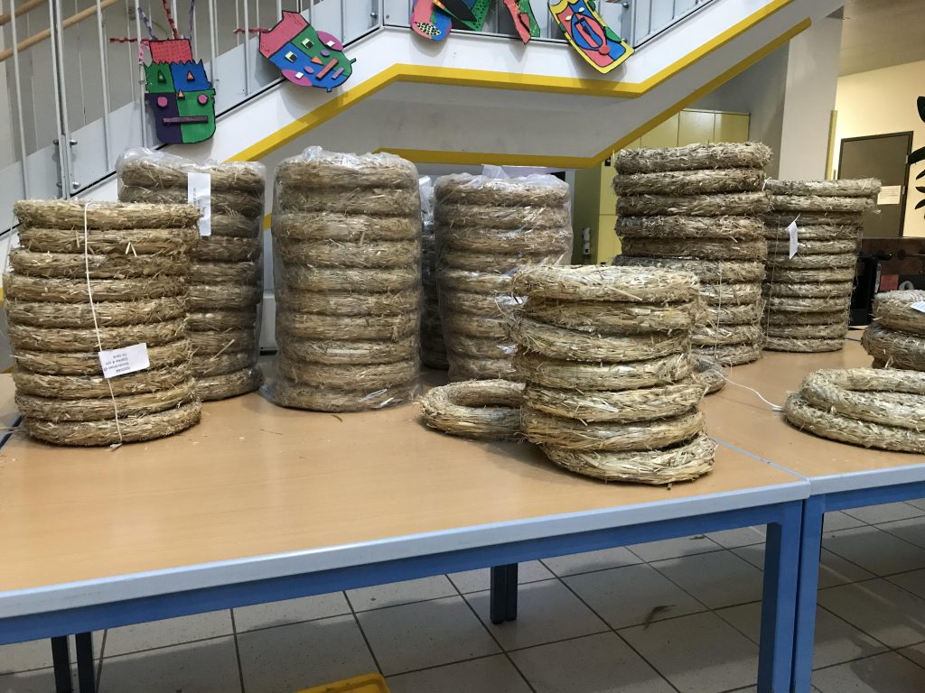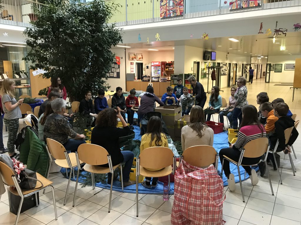 Diesen Satz hörte Frau Prof. Spiekermann jedes Jahr – und das nicht nur einmal. Einige Klassen der Unterstufe kommen jedes Jahr in den Genuss einen Adventkranz zu binden. Es wird erklärt, wie man das frische Reisig von einem Bauern aus St. Florian schneidet, sodass man möglichst viele Ästchen verwenden kann, wie gebunden wird und wie die Holzplättchen angeschraubt bzw. –gebunden werden. Auch viele Omas und Mamas nehmen die Einladung ihrer Kinder an, sie zu unterstützen. Eine Oma ist sogar aus der Steiermark angereist, um beim Adventkranzbinden dabei zu sein.