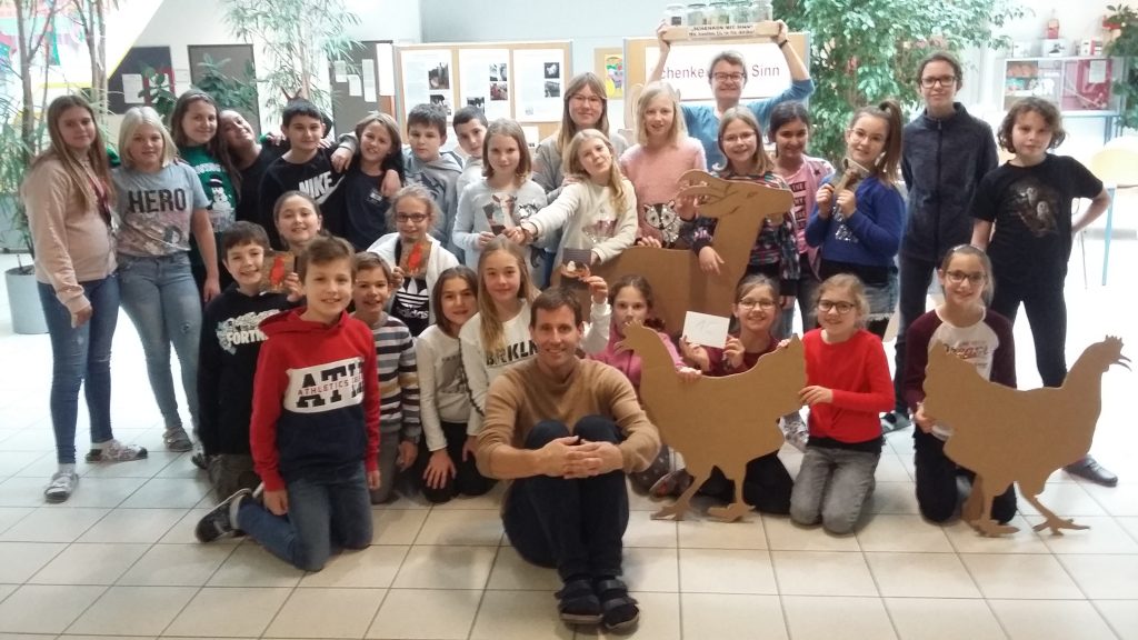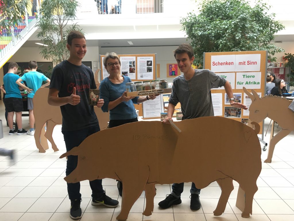 „Wieviele Tiere haben wir denn schon?“ fragten wieder manche SchülerInnen während der Aktion? Nach 2 Wochen Spenden sammeln in der großen Pause konnte heuer 2019 genau 2019, 42 Euro gezählt werden! „ Jedes Jahr wird mehr gespendet, und es ist berührend wie viele schöne Geschichten rund um das Spenden zu erzählen wären“ ist die Organisatorin Mag. Reinhilde Spiekermann begeistert. Viele Klassen sammelten um ein „ganzes“ Tier zu kaufen. Die 2B und 3D kauften je einen Esel um 110 Euro, die 4D, 5A/5B sammelten für ein Schwein um je 70 Euro, Ziegen um je 40 Euro sammelten die 1B, 1C, 1D und Hühnerscharen erstanden die 1C, 1B, 4A. Manche Klassenvorstände „rundeten auf“ um das nächstteure Tier zu kaufen. Manche Klassen gaben dem gespendeten Tier sogar einen Namen! Weil die liebe Klassenvorständin der 2B Mag. Hannah Burgstaller im Jänner in Karenz gehen wird, beschloss die 2B ihren gekauften Esel, also ihre Eselin in Afrika „Hannah“ zu nennen. Schon eine Ehre, sagen zu können „Mein Esel lebt in Afrika“. Manche LehrerInnen und Schülerinnen kauften auch privat ein Tier: Lisa, Luisa, Leni, Nala, Maria, Christina, Sina, Susi, Johannes… 2 Maturanten, Thomas und Valentin kauften ein Schwein, die Kleinen nebenbei scherzten: Gel, weil ihr ein Schwein haben wollt bei der Matura?! Andere SchülerInnen spendeten in der Pause ihr Kleingeld für ein Tier ihrer Wahl oder sonst bei Susi am Buffet. Die Oma einer Schülerin der 5B spendete 3 Eseln für ihre Söhne, Hühnerscharen für die Enkel. Einfach so, aus Dankbarkeit für ihr gutes Leben. „Wir haben hier alles, die Menschen in Afrika sollen auch was haben!“ sagt die Oma am Telefon. Ebenso kauft die Mutter Ziegen für ihre Kinder. Auch am Elternsprechtag gibt es nette Geschichten. Manche freuten sich, um noch ein sinnvolles Weihnachtsgeschenk zu bekommen, andere kaufen ein Tier aus Freude, dass der Elternsprechtag so gut gelaufen ist. „Ich habe am Elternsprechtag nur Gutes über meine Tochter gehört, jetzt kaufe ich ihr eine Ziege!“ sagte ein Vater. In den Pausen während der zwei Wochen Sammelzeit ergaben sich auch gute Gespräche. Die Menschen in Afrika sind die Ersten, die die Klimakrise zu spüren bekommen – und das, obwohl sie den kleinsten ökologischen Fußabdruck haben und am wenigsten die Probleme verursachen. Wenn nun mit diesem Geld Nutztiere in Afrika gekauft werden, um den Menschen dort ihren Alltag zu ermöglichen oder zu erleichtern, ist das alles nur ein Tropfen auf den heißen Stein. Trotzdem „Und wenn ich wüsste, dass morgen die Welt unterginge, würde ich heute noch mein Apfelbäumchen pflanzen.“ Martin Luther (angeblich)
