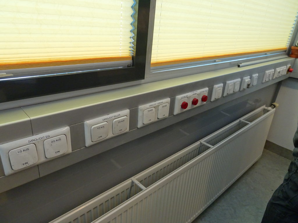 Die Lichtzentrale – viele Schalter an der Wandleiste: