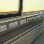 Sämtliche Gänge und die Aula haben Fußbodenheizung, die Klassenräume Heizkörper. Die Klassenräume sind auf 21 – 22 Grad eingestellt.
