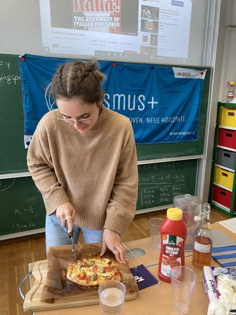 Im Rahmen der internationalen Erasmus-Days von 14.-16.10.2021 haben die achten Klassen des b[r]g Enns am Wettbewerb „Pizza Challenge“ teilgenommen. Aufgabe war es, eine Pizza in Form eines Landes der Europäischen Union zu backen oder in den Landesfarben zu belegen. Mit großem Eifer und Kreativität machten sich 32 Schüler*innen und vier Lehrer*innen an die Arbeit.