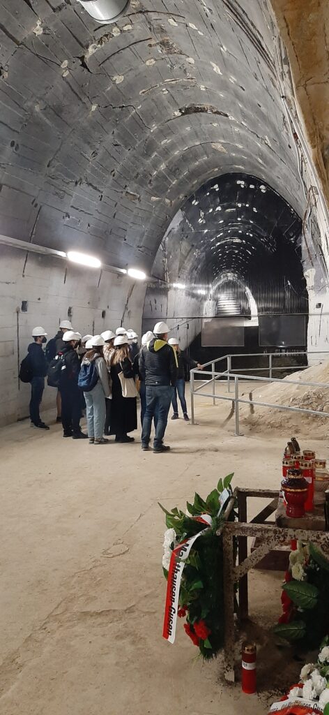 Am 22. Oktober 2021 besuchte die 8B Klasse unter der Leitung von Mag.a Julia Mayr die ehemalige Stollenanlage mit dem nationalsozialistischen Tarnnamen „Bergkristall“ in St. Georgen an der Gusen. Nach einer interessanten Einführung in die nationalsozialistische Vergangenheit der Region durch Herrn Bernhard Mühleder im Heimathaus St. Georgen, erlebten die Schüler*innen eine ebenso spannende wie beklemmende Führung durch die Stollen, in denen in den letzten Kriegsjahren Flugzeugteile der Me 262 produziert wurden und die nur an 6 Tagen im Jahr für die Öffentlichkeit zugänglich sind. In mehreren Diskussionsphasen wurde vor Ort das unmittelbare Erleben eines historischen Schauplatzes schlimmster Arbeitsbedingungen und grauenhafter Lebensumstände tausender Menschen aufgearbeitet.
