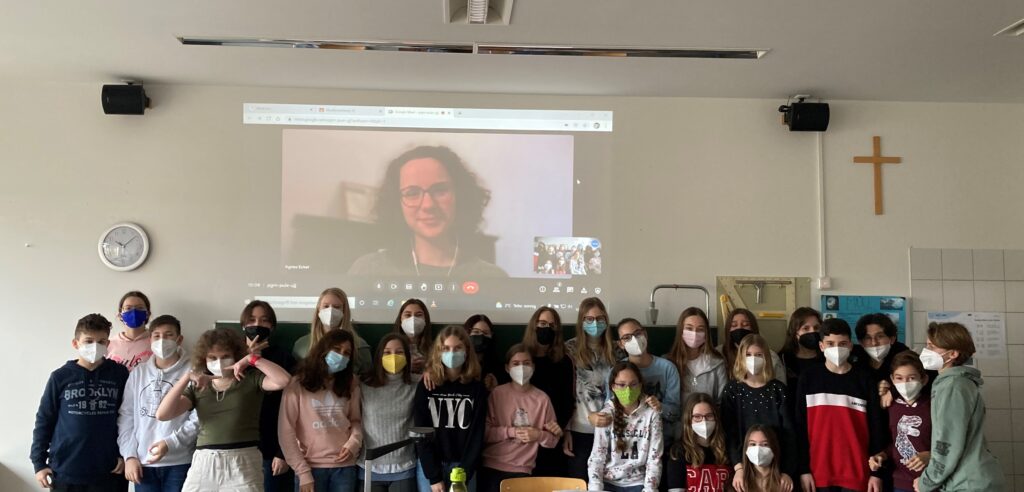 Im Sinne der Berufsorientierung lernten die 3C und die 3D den Beruf Tonmeister*in im Musikunterricht genauer kennen. Agnes Ecker, Tonmeisterin u.a. bei den weltbekannten Bayreuther Festspielen, erzählte von ihrem Werdegang und vom Berufsalltag als Aufnahmeleiterin. Die Schüler*innen konnten aufgrund ihres Vorwissens über Tontechnik und Tonstudios verschiedenste Fragen stellen und durften Frau Ecker per Videokonferenz kennenlernen. So erfuhren sie beispielsweise, wie das Studium der Tonmeisterei abläuft, wie ein typischer Aufnahmetag aussieht und ob es Musiker*innen gibt, mit denen die Zusammenarbeit schwierig ist. Außerdem erzählte Frau Ecker über den Einfluss der Pandemie auf die Musikbranche und darüber, dass ebenso Frauen in diesem technischen Beruf brillieren können – auch wenn sie noch viel zu selten vertreten sind.