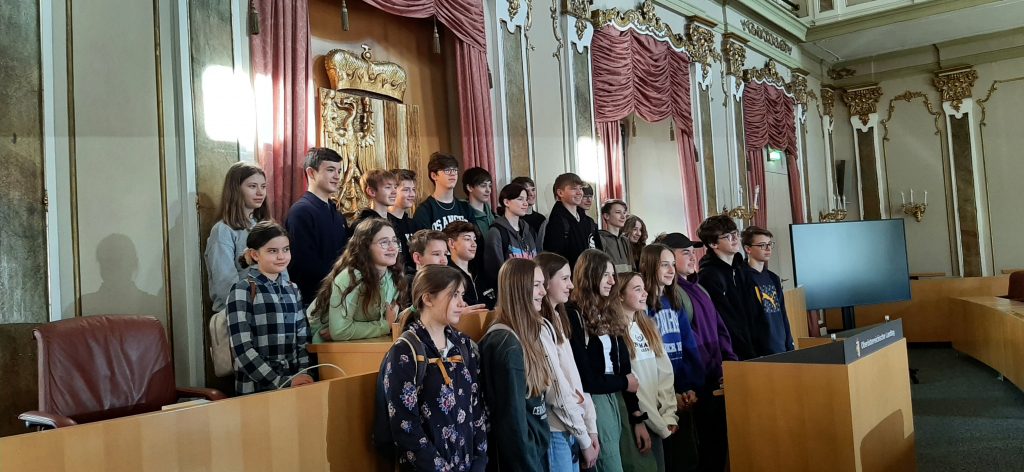 Zu diesen Themen wurden in Gruppen Fragen erarbeitet, die die Schüler*innen im Anschluss in einem Interview an drei Landtagsabgeordneten stellen konnten. Landtagsabgeordnete Anna-Sophie Bauer, Landtagabgeordneter Wolfgang Stanek und Landtagsabgeordneter Ing. Michael Fischer standen dazu fast zwei Stunden Rede und Antwort.