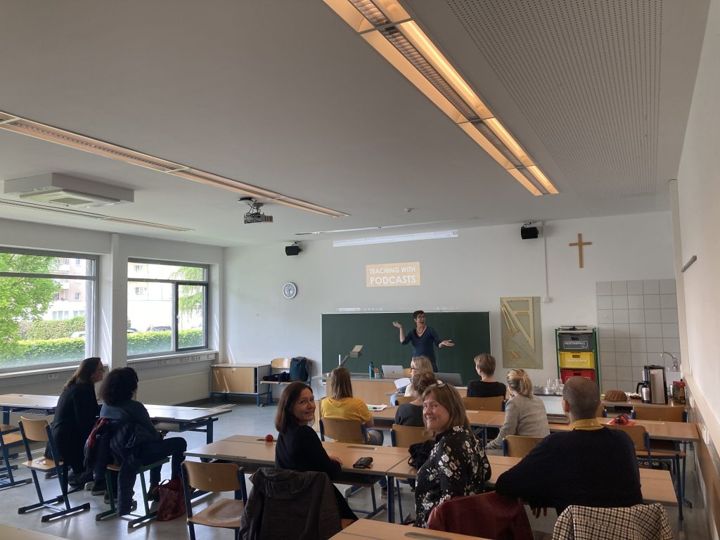 Die beiden „invited experts“ gestalteten zwei Nachmittagsvorträge: Eine Lehrer*innenfortbildung über den Einsatz und die Produktion von Podcasts im Unterricht und einen Vortrag über die Auswirkungen der Klimaerhitzung im Mittelmeerraum am Beispiel Nice für Lehrer*innen und Schüler*innen.