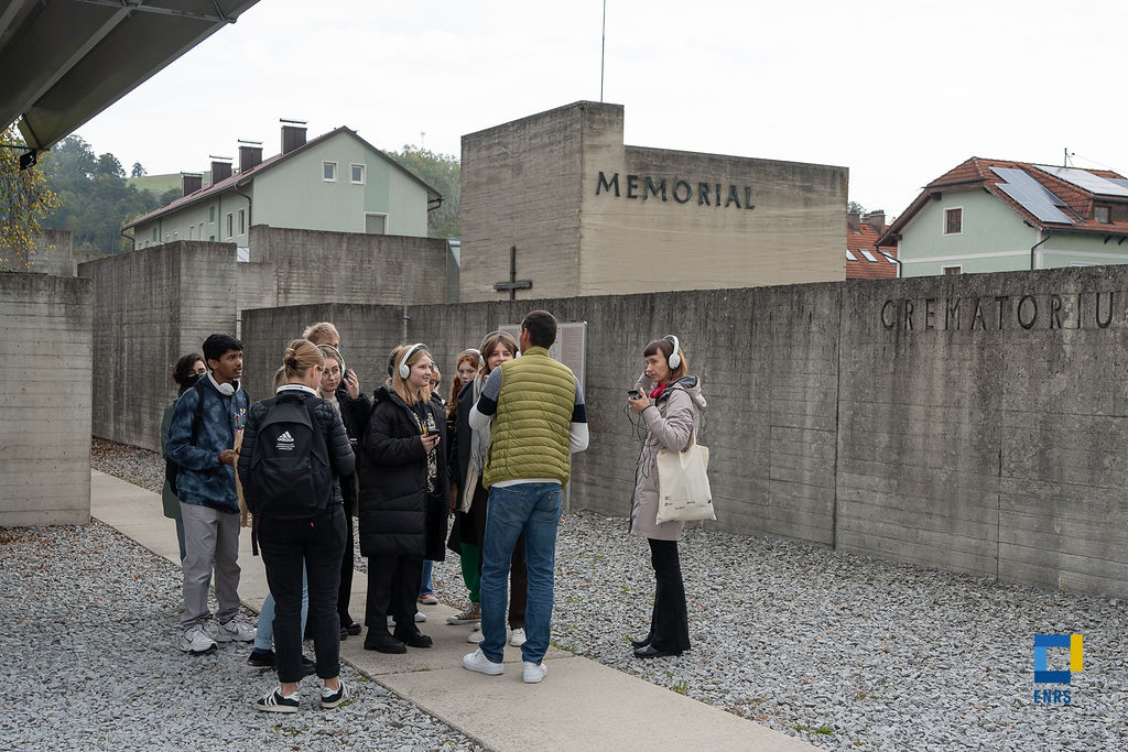 28 Schüler*innen und 4 Pädagog*innen aus Litauen, Polen, Rumänien und Österreich nahmen von 9. bis 16. Oktober 2022 an der 9. Edition des internationalen Bildungs-und Kunstprojekts Sound in the Silence teil. Aus Österreich waren Schüler*innen der 7.+8. Klassen des b[r]g Enns in Begleitung von Prof. Mayr vertreten: Clara Daubek-Puza, Leonie Füchtner, Kilian Killigseder, Marie Schöfberger, Yannick Schott, Carina Tischberger und Victoria Wagner. Die Schüler*innen verbrachten 7 Projekttage an den KZ-Gedenkstätten Mauthausen, Gusen und in der ehemaligen Stollenanlage „Bergkristall“. Die Teilnehmer*innen konnten in Workshops und Rundgängen die Gedenkorte kennenlernen. So waren sie beispielsweise während des Audiowegs in Gusen mit Überresten aus der Lagerzeit inmitten des heutigen Siedlungsbaus konfrontiert. Die Erfahrungen wurden in Kunstworkshops reflektiert.