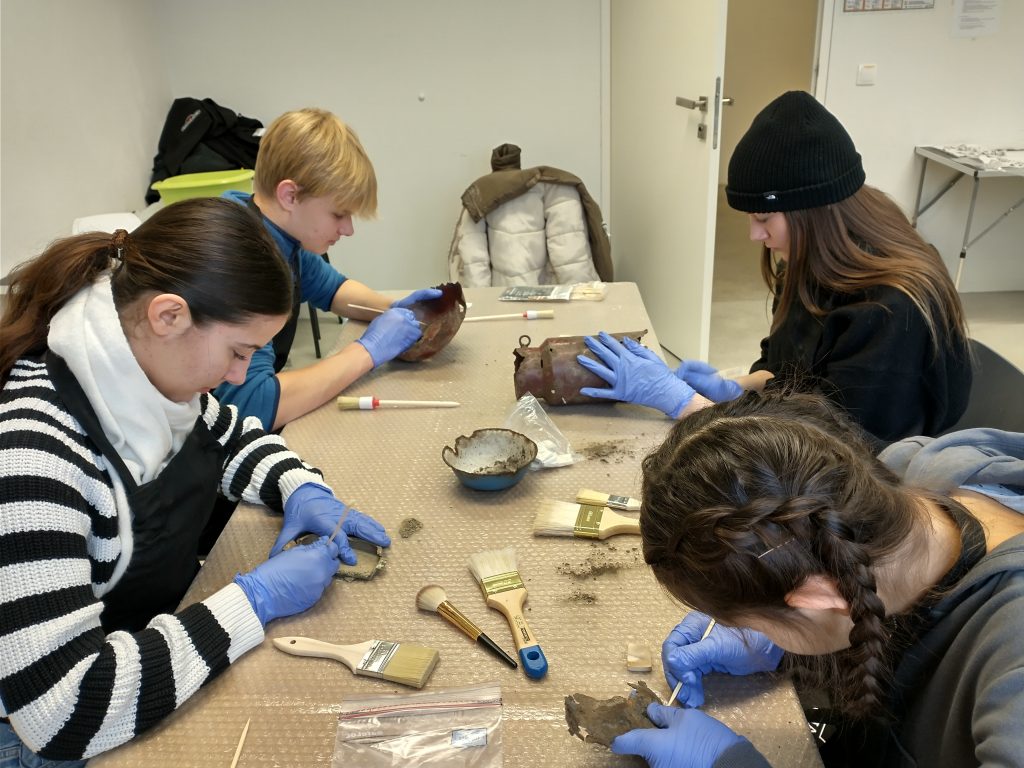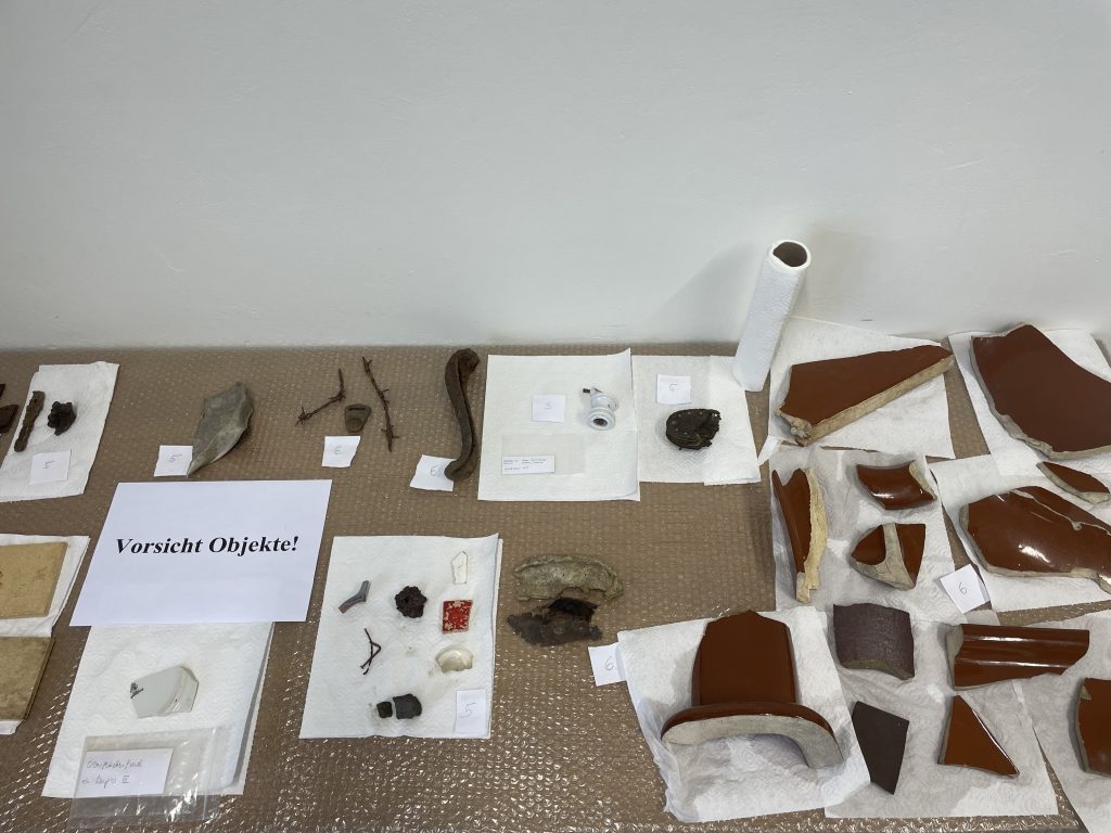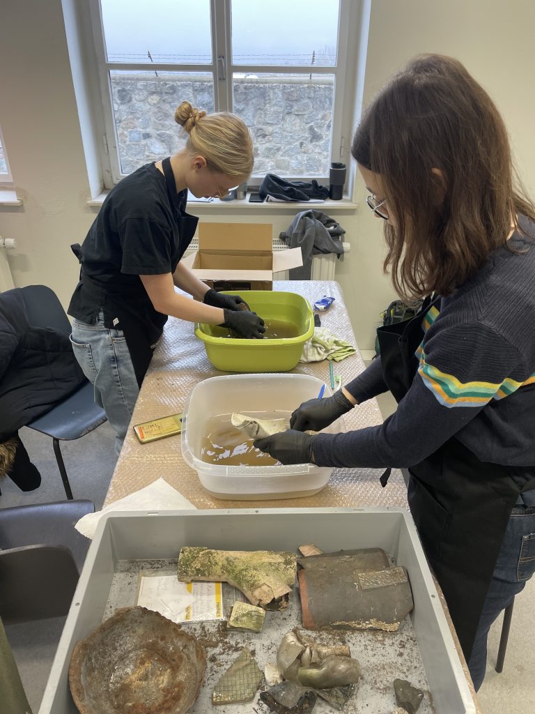 Die dritte Station befasste sich mit dem Reinigen und Konservieren originaler, archäologischer Objekte. Unter anderem befanden sich bei den Objekten Isolatoren, Teller, Schüsseln, Überreste einer Toilette und andere Bruchstücke von den verschiedensten Gegenständen. Die Objekte wurden durch Ausgrabungen im Bereich des Sanitätslagers und der Müllhalden des Konzentrationslagers bereitgestellt. Diese Arbeit war sehr interessant, da wir nicht nur Vieles über die archäologische Arbeitsweise, sondern auch über die Objekte selbst erfahren haben. Durch das Arbeiten mit realen Objekten wird einem die Geschichte umso mehr bewusst. Eine Schüssel von einem Häftling in den Händen halten zu können, war eine unvergessliche Erfahrung.