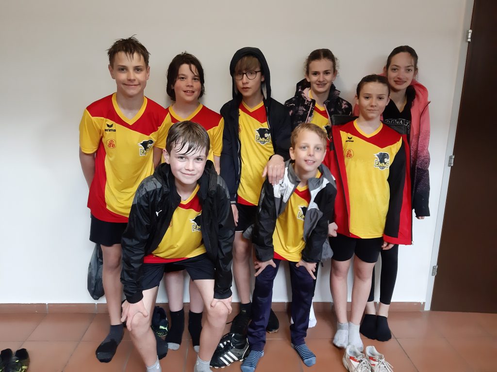 Am Mittwoch, den 10.05.2023 fuhren acht Schüler*innen des Faustballteams des b[r]g Enns nach Haid zu den Faustball-Bezirksmeisterschaften. Auf der Hinfahrt waren wir alle schon gespannt auf unsere Gegner*innen. Zu diesen zählten jeweils zwei Teams aus Haid, Niederneukirchen und Neuhofen. Das erste Spiel gegen ein Team aus Haid war noch nicht so spannend, da die Gegner*innen sehr viele Punkte verschenkten. Mit 12:7 gewannen wir unser erstes Spiel. Die weiteren Spiele liefen sehr gut für uns. Unter schwereren Bedingungen, da es zu regnen begonnen hatte, verloren wir dann ein Spiel gegen Niederneukirchen. Wir spielten aber trotzdem weiter und gewannen die nächsten Spiele wieder. Bei der Siegerehrung waren wir alle schon sehr gespannt auf das Ergebnis. Alle Punkte wurden zusammengezählt und es stellte sich heraus, dass wir Punktegleichstand mit Neuhofen hatten. Da wir aber das Spiel gegen Neuhofen gewonnen hatten, wurden wir ganz knapp Erste*r. Stolz brachten wir unseren Pokal zurück zur Schule.