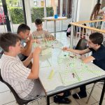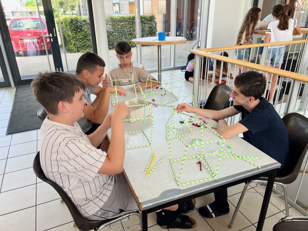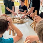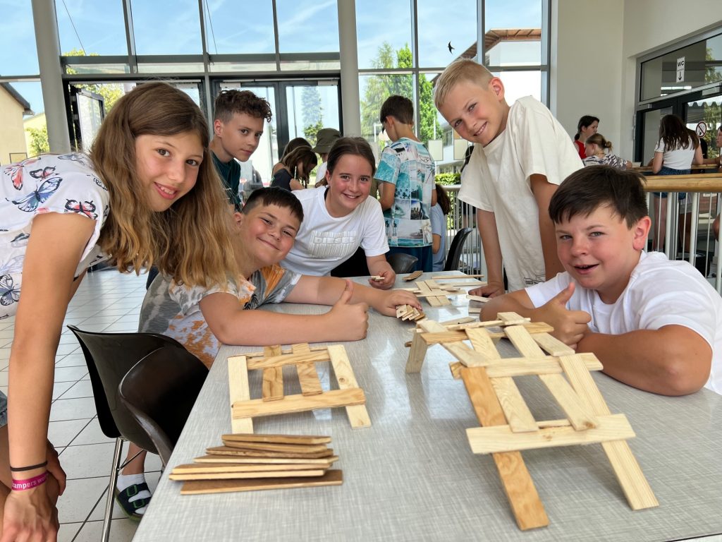 In der Leonardo-Werkstatt drehte sich natürlich alles um das Universalgenie Leonardo da Vinci. Besprochen wurde aber nicht nur die Geschichte rund um Leonardos Leben und seine berühmtesten Werke, sondern auch seine Erfindungen, seine technischen Konstrukte und Modelle. Die Schüler*innen konnten viel ausprobieren: die Leonardo-Brücke zum Drübergehen und in klein bauen, platonische und archimedische Körper nachbauen, der Goldene Schnitt wurde mittels goldenen Zirkels erkundet und vieles mehr. Trotz Hitze waren die Schüler*innen mit Begeisterung dabei.
