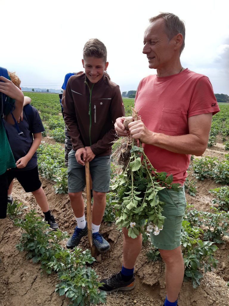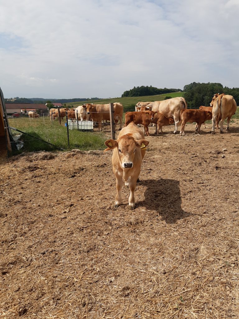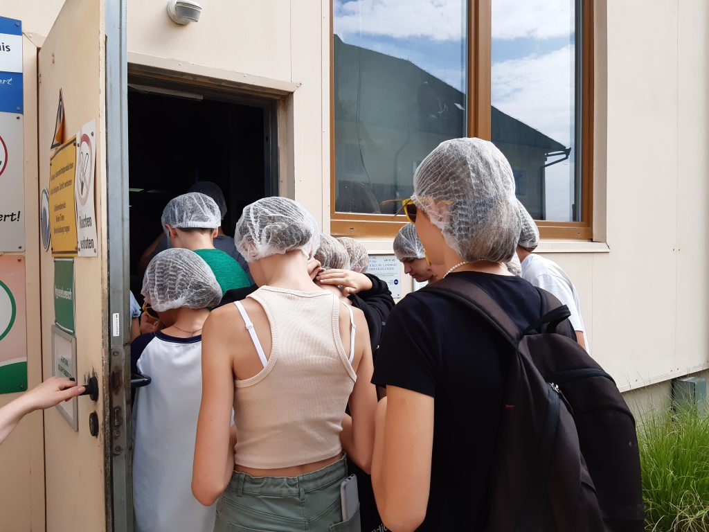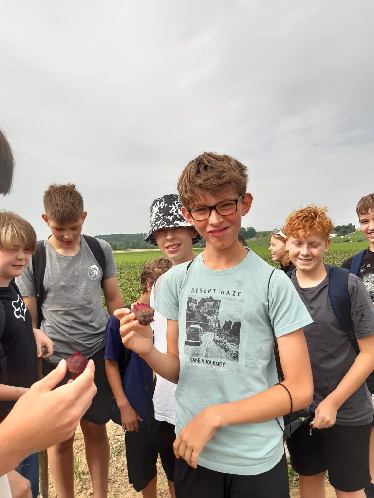 Am Montag, den 3.7.2023 haben wir, die 3D in Begleitung von Frau Prof. Eichler und Frau Prof. Kolouch, eine Exkursion zum Biobetrieb „Morgentau“ von Christian Stadler unternommen. Wir wurden mit dem Bus zu einem der Felder in Hargelsberg gebracht. Dort erzählte uns Herr Stadler vieles über die Kulturen, die er anbaut. Wir durften rote Rüben kosten und machten einen Wettbewerb, wer die Größte findet. Nach ungefähr einer Stunde fuhren wir zu dem Hof von Herr Stadler. Dort machten wir eine kurze Pause. Danach erkundigten wir die Halle und uns wurde erklärt, wie das Gemüse vom Feld verpackt und gewaschen wird. Als wir wieder rausgingen, machten wir uns auf den Weg, um Herrn Stadlers Murbodner Kühe zu begutachten. Wir erfuhren vieles über das Vieh und durften die kleinen Kälber streicheln. Schlussendlich grillte Herr Stadler Würstchen Mais und Gemüse für uns für uns, während wir Fußball spielten. Wir genossen das Essen und fuhren anschließend zur Schule zurück.