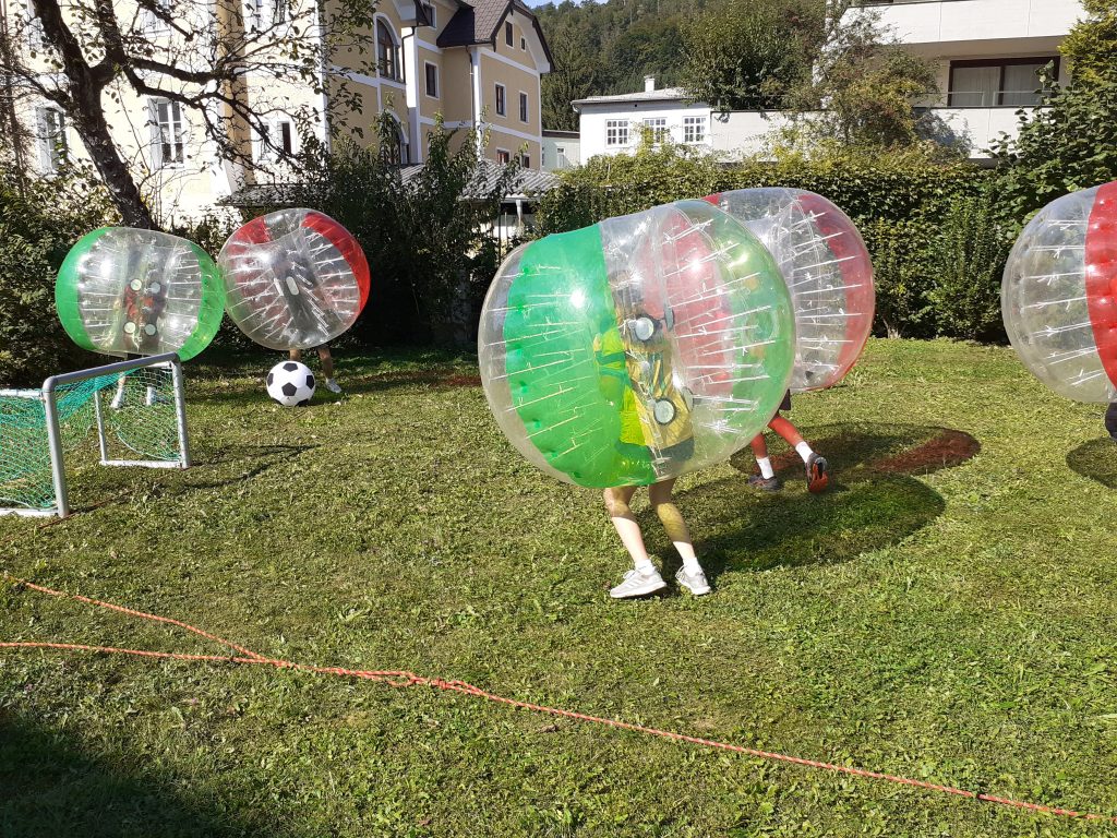 Im Rahmen der Kennenlerntage fuhren die 5A und 5B in Begleitung von Anna Bart und ihren Klassenvorständen Günther Redl und Hannes Haunschmidt nach Bad Ischl. Nach der geschafften Anreise mit dem Zug und gestärkt vom Mittagessen, stand am Nachmittag Teambuilding für die beiden neu geformten Klassen auf dem Programm. Beim lustigen Bubble-Soccer wurden nicht nur Tore geschossen, es wurde auch kräftig gegenseitig umgeworfen. Nach dem Gegeneinander beim Fußball, musste bei den anschließenden Challenges, wie zum Beispiel dem Bau eines Turms, zusammengearbeitet werden. Abgerundet wurde der Abend des ersten Tags mit einem Spaziergang durch das Zentrum von Bad Ischl. Am zweiten Tag wurde noch die berühmte Kaiservilla mit ihrem Park besucht, danach wurde die Heimreise mit dem Zug angetreten.