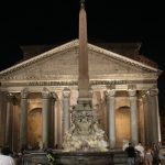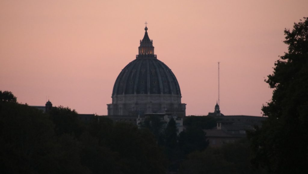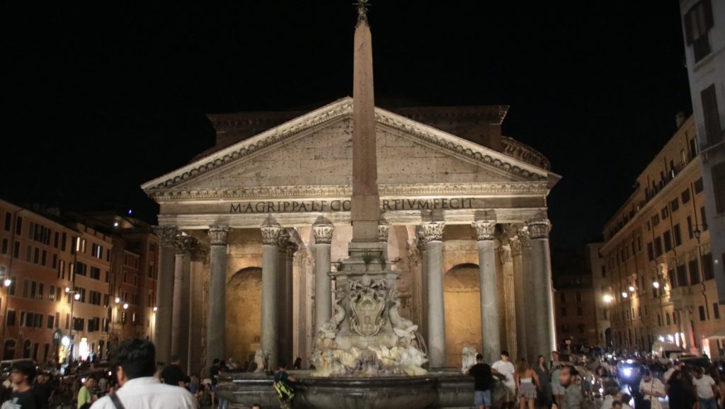 Tag drei begann ebenfalls um 8:15. Es ging wieder in die Innenstadt und weiter zum Vatikan. Da die Schlange vor der Peterskirche schon den gesamten Platz umspannte, entschied man sich diesen Besuch auf den letzten Tag zu verschieben und nun den deutschen Friedhof im Vatikan zu besichtigen, ein netter, kleiner, grüner, kühler Ort inmitten der pulsierenden Metropole. Dass man diesen Bereich nur in kleinen Grüppchen von maximal fünf betreten durfte und diese Grüppchen im Abstand von zwei Minuten das Gelände betreten mussten, war ein wenig affig, hielt uns jedoch nicht davon ab und ließ vor allem den Stoischsten aller – Prof. Stöllner – in keiner Weise aus der Ruhe kommen. Im Anschluss wanderten wir den Tiber entlang an der Engelsburg vorbei zur Ara Pacis, wo wir für einen einzigen Tempel 13 Euro Eintritt zahlten (Zum Vergleich: in der mehrere Hektar großen Villa Adriana waren es 3€). Hier gingen wir erstmalig gemeinsam essen, um sogleich weiter in Richtung Piazza Navona und Pantheon zu gehen. Von gehen kann fast nicht die Rede sein. Eher traben, rennen oder laufen. Prof. Stöllner legte ein Tempo vor, das unerreicht ist. Nach dem Pantheon wieder zum Tiber, ins ehemalige Ghetto und mit dem Bus nach St. Paul vor den Mauern, der schönsten Kirche, die wir besichtigen würden, wie die Studierenden befinden. Zurück im zentralen Rom wurden die Studierenden beim Zirkus Maximus entlassen, von wo aus sie sich über einen Umweg zu Fuß zum Hotel bewegten. Der Marsch dauerte insgesamt über eine Stunde, wurde vom wohl besten Essen und dem nettesten kleinen Restaurant der Reise unterbrochen und führte abermals an den Tiber, um die Tiberinsel, zum Kapitol, dem Forum, dem Kolosseum und den Lateran. Diesmal bei Nacht. Auch schön.