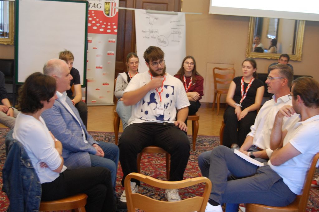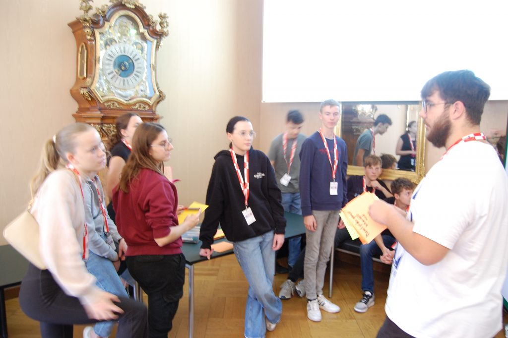 Im Zuge des Geschichtsunterrichts mit Arbeitssprache Deutsch durften die Schüler*innen der Klassen 7ABG am 11.10.2023 eine Exkursion in das Landhaus Linz unternehmen. Begleitet von den Lehrkräften Prof. Vera Nefischer und Prof. Johanna Gölles erwartete sie dort der Workshop „Forum junge Demokratie“, in dem sie mehr über die Abläufe im Landtag und die Zusammenarbeit mit der Landesregierung Oberösterreichs sowie erneuerbaren Energien erfuhren. Nach einer spannenden Führung durch das Landhaus mit Besichtigung des 66 Meter hohen Turms und des Elisabeth-Zimmers, benannt nach Kaiserin „Sissi“, genossen sie eine Pause mit leckeren Snacks und Getränken. Danach hatten die Schüler*innen die einmalige Möglichkeit, drei Abgeordneten des Landtags Fragen bezüglich erneuerbarer Energie und der Arbeit im Landtag zu stellen. Mag. Ing. Regina Aspalter (ÖVP), Thomas Dim (FPÖ) und Joachim Aigner (MFG) nahmen sich freundlicherweise Zeit für die kreativen Fragen, welche zuvor im Geschichts- und Politikunterricht ausgearbeitet worden waren, und konnten viele Unklarheiten in den Köpfen der jungen Generation klären.