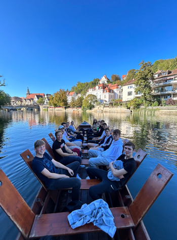 Mit vielen neuen Eindrücken und einigen neuen Freunden im Gepäck ist die EU-Sprachreise der 7. Klassen, die von 26. September bis 3. Oktober 2023 stattgefunden hat, zu Ende gegangen. Schon die Anreise nach Brüssel bot bereits erste Highlights: Der erste Stopp war bei der KZ-Gedenkstätte in Dachau genau getimed, danach fuhren wir in Tübingen bei strahlendem Sonnenschein mit den ikonischen Stocherkähnen über den Neckar und konnten am Abend im Rahmen eines Pubquiz‘ im Studentenviertel der Stadt unser Allgemeinwissen beweisen.