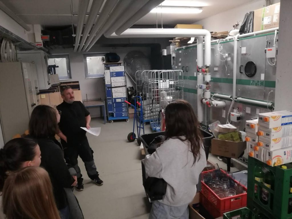 Am 07.03.2024 fand im Rahmen des Wahlpflichtgegenstandes „Generation Zukunft“ ein Schulrundgang mit Schulwart Christian Bart und DI Georg Spiekermann vom Klimabündnis statt, bei dem den Schülerinnen einerseits die Haustechnik erklärt wurde, andererseits seitens des Klimabündnis Verbesserungsvorschläge und Methoden zum Energiesparen am neuesten Stand der Technik aufgezeigt wurden.