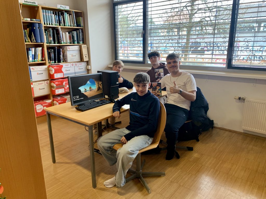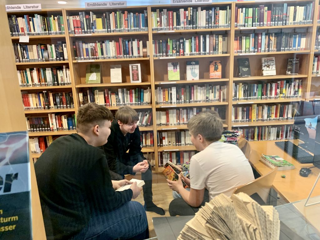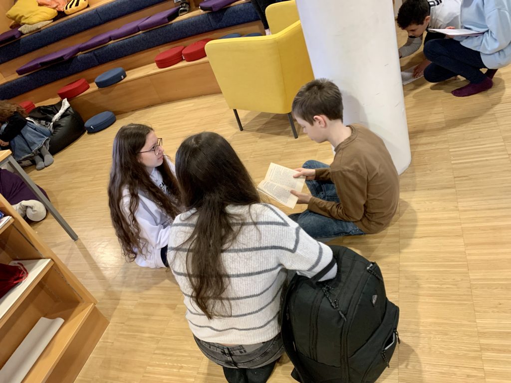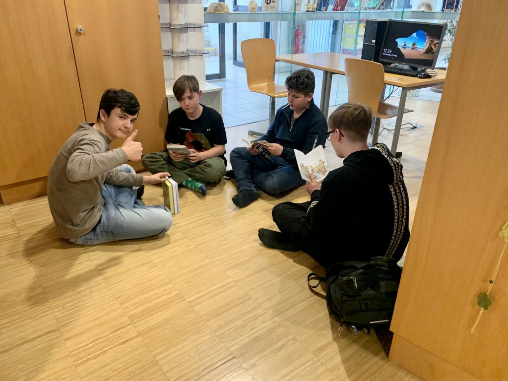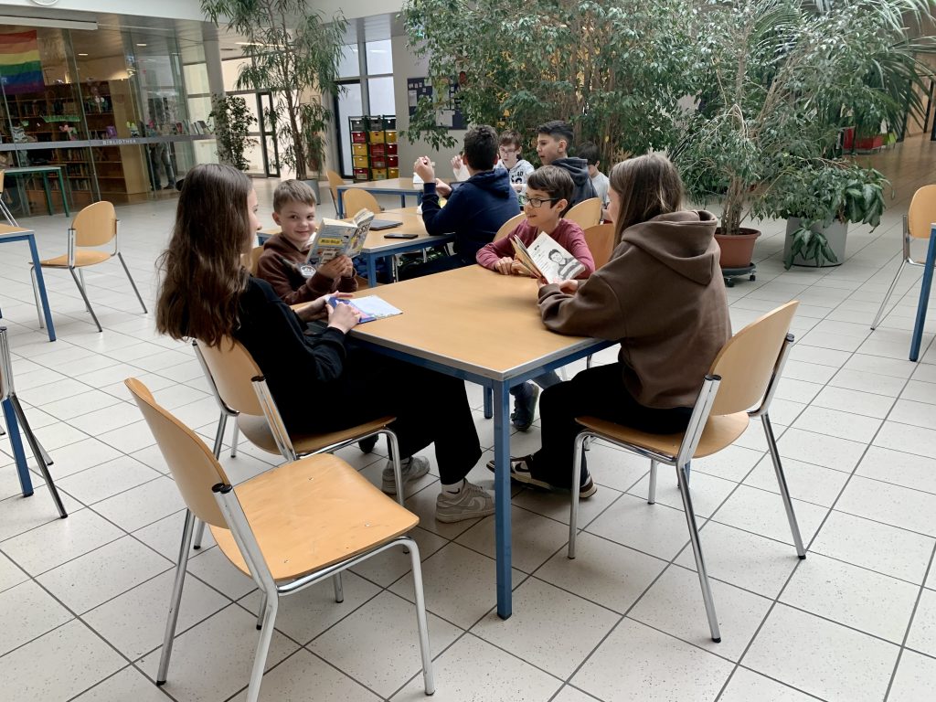 Für ein besonderes Projekt trafen sich die 5B und die 1D, um sich gegenseitig aus ihren englischen Büchern vorzulesen. Dabei zeigten die Erstklässler*innen, wie viel sie in diesem Jahr schon in Englisch gelernt haben während die Fünftklässler*innen die jüngeren Schüler*innen motivierten, weiterzulesen und zeigten, was bis zur Oberstufe alles möglich ist. Der Spaß war groß und schon beim Läuten wurde der Wunsch laut, diese Aktion bald zu wiederholen.