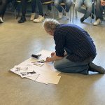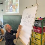 auch, als er uns interaktiv bei einer Zeichnung am Flipchart integrierte. Er demonstrierte live, wie er